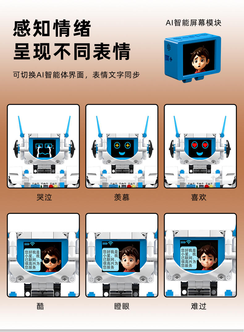 AI小星智能机器人(AI Robot)属于科技系列积木套组,整个套组包含 530 个积木颗粒。首发于2025年。