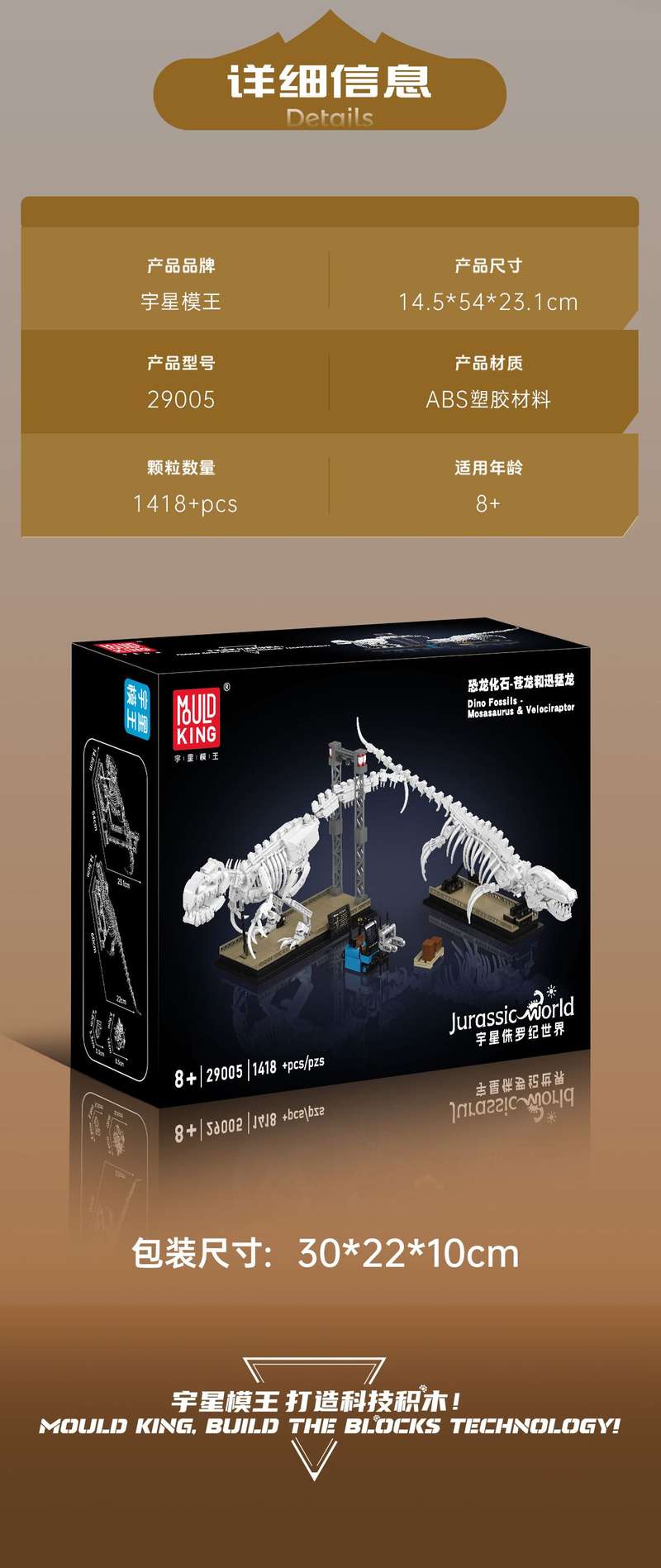 侏罗纪世界:苍龙和迅猛龙化石(Dino Fossils Mosasaurus & Velociraptor)(宇星模王MouldKing 29005)