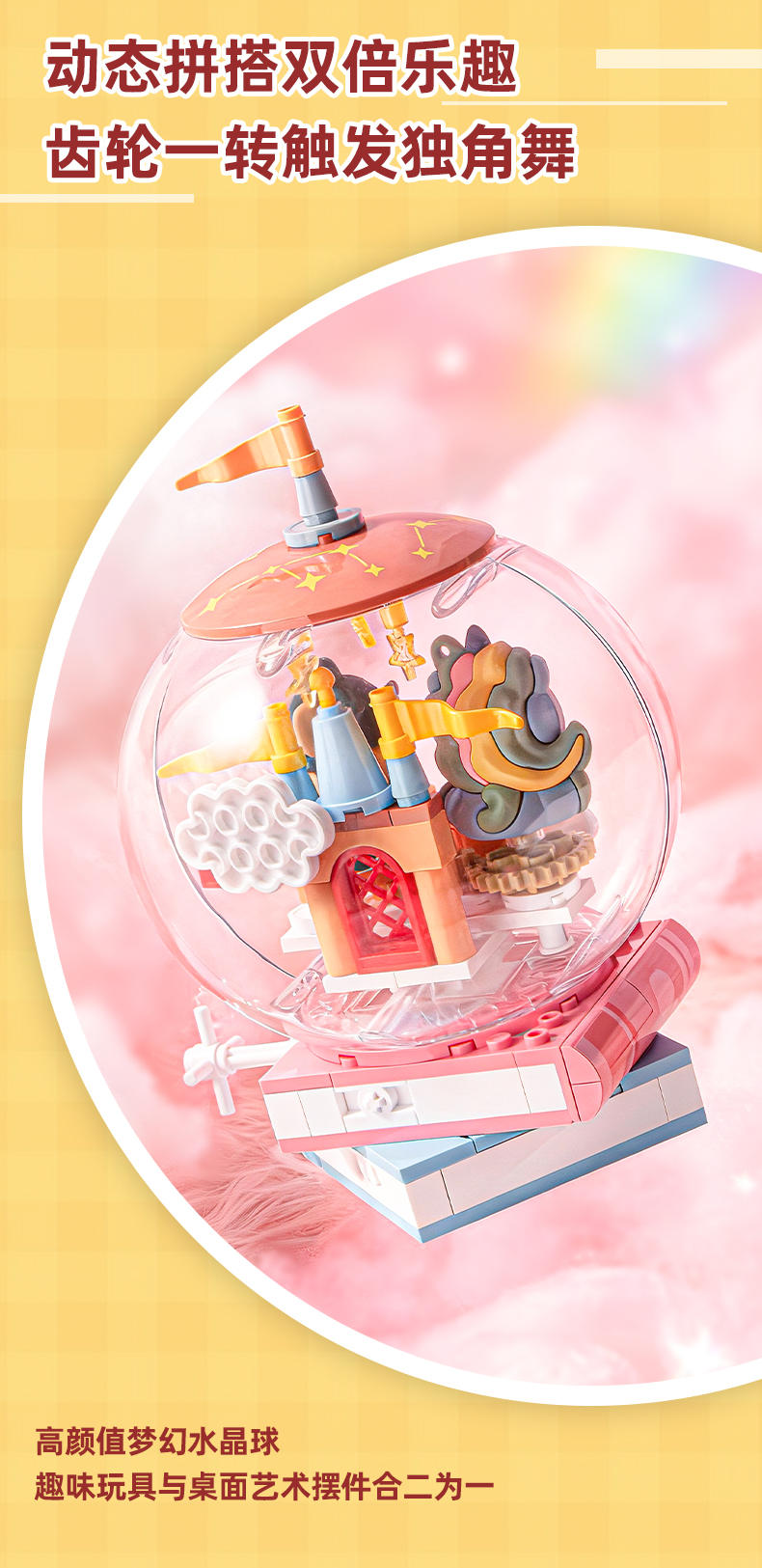 梦幻独角兽水晶球属于主题系列系列积木套组,整个套组包含 145 个积木颗粒。首发于2025年。