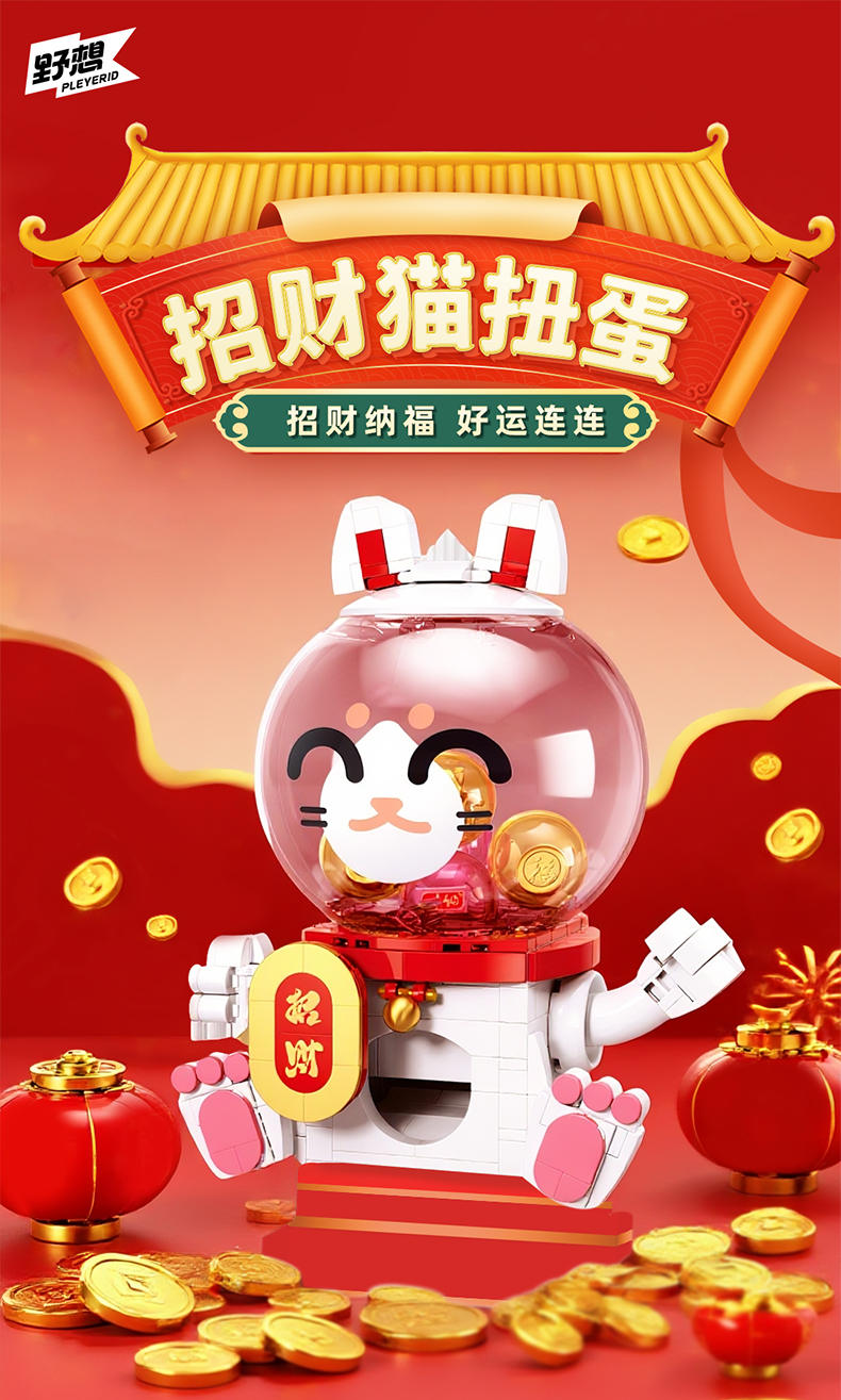 招财猫扭蛋机属于中国传统节日系列积木套组。首发于2025年。