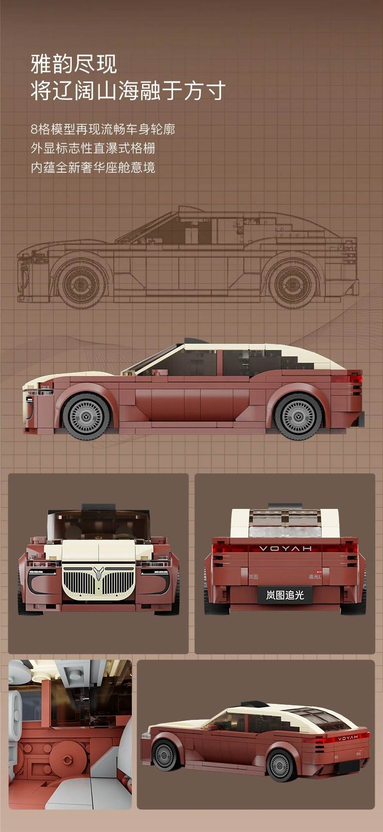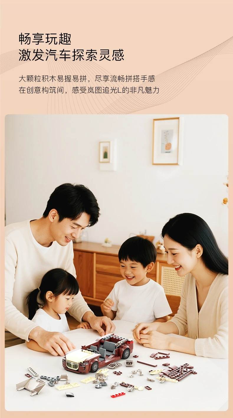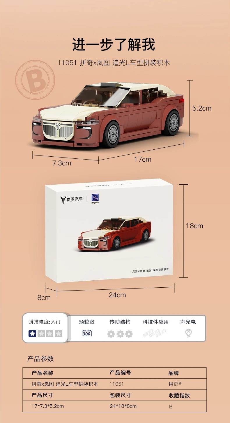 岚图 追光 L 1:24属于赛车系列积木套组,整个套组包含 300 个积木颗粒。首发于2025年。