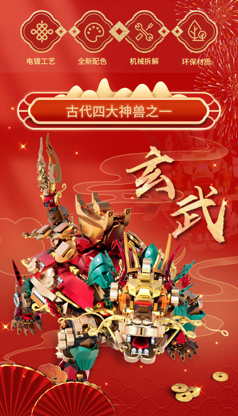 神兽玄武属于中国传统节日系列积木套组,整个套组包含 1829 个积木颗粒。首发于2025年。