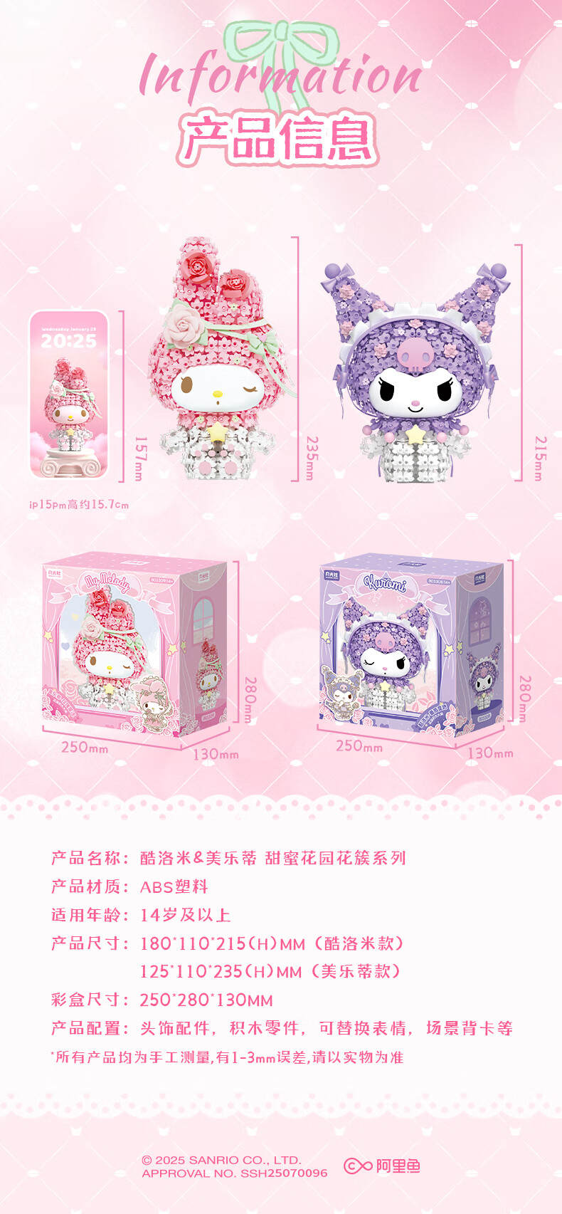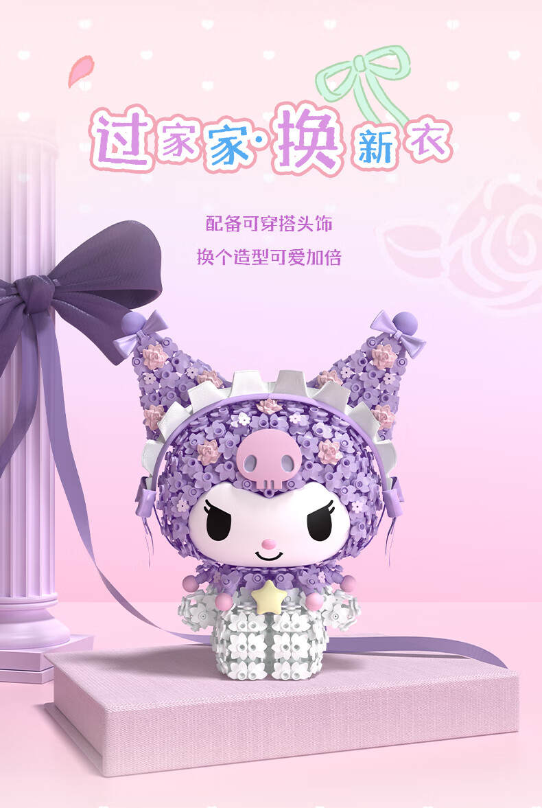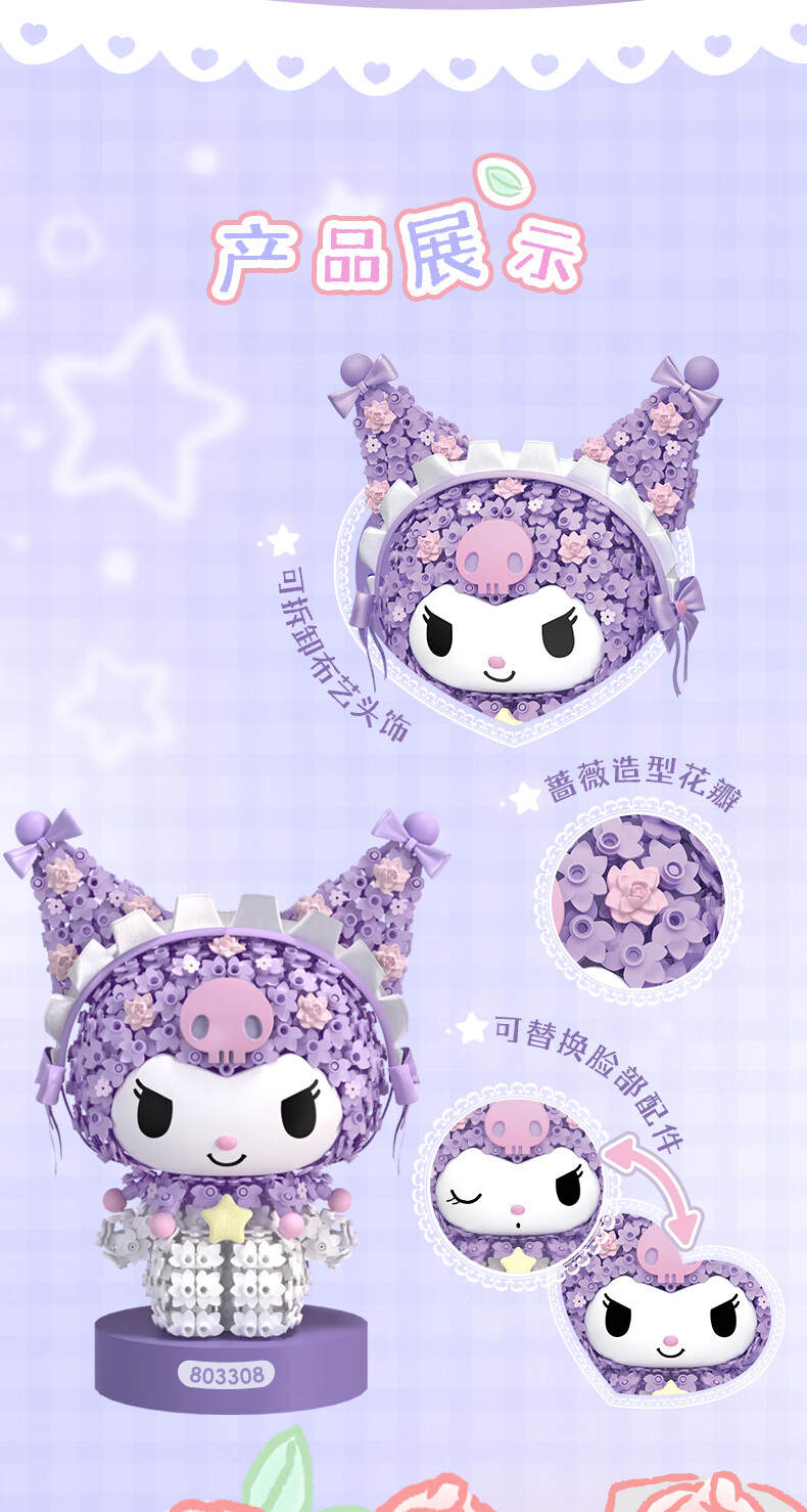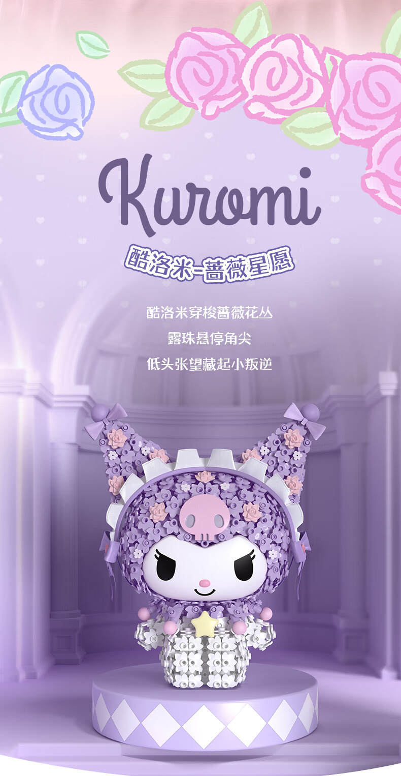 三丽鸥花簇大体:蔷薇星夜 酷洛米属于主题系列系列积木套组。首发于2025年。