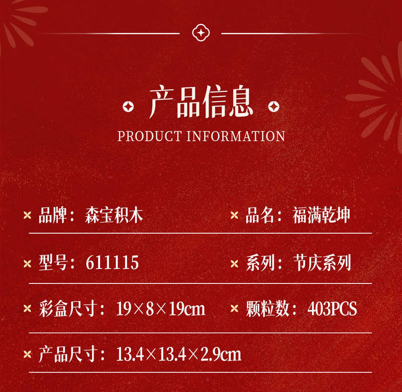 福满乾坤属于中国传统节日系列积木套组,整个套组包含 403 个积木颗粒。首发于2025年。