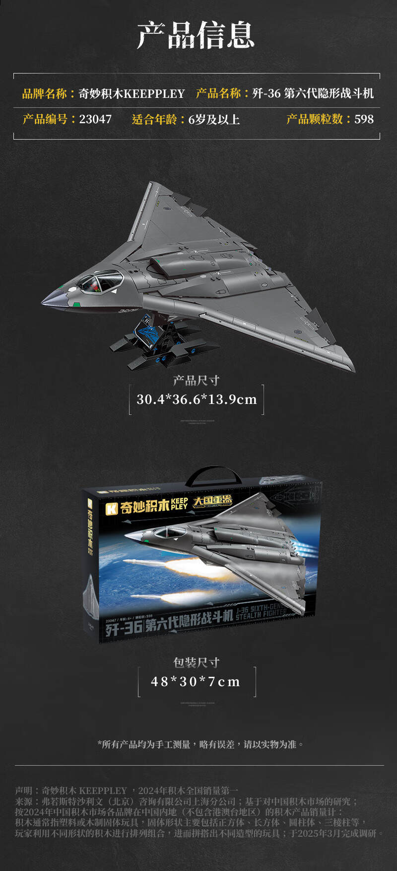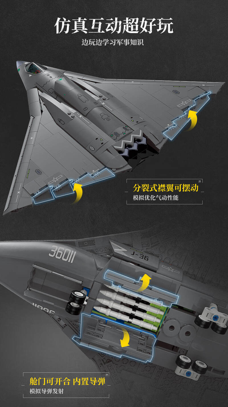大国重器:歼-36 第六代隐型战斗机(J-36)属于军事系列积木套组,整个套组包含 598 个积木颗粒。首发于2025年。