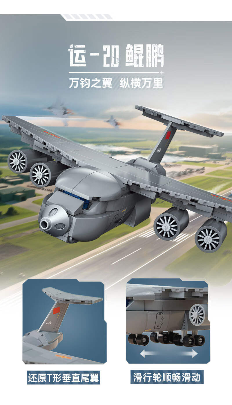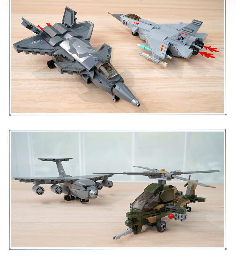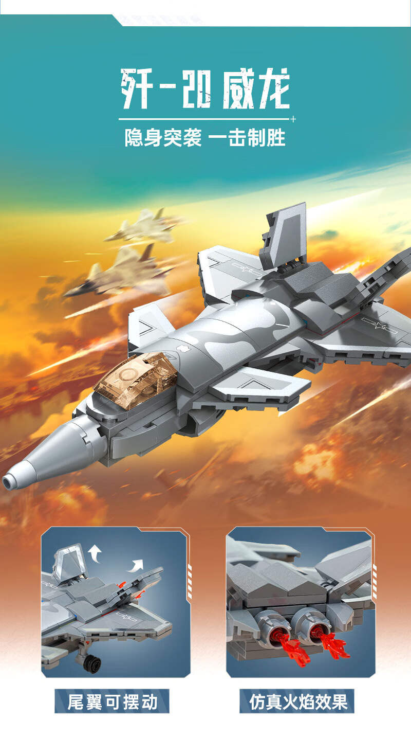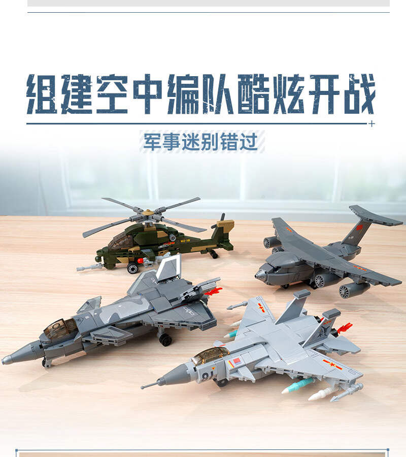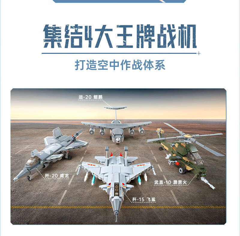 【积木小站】和平重装:空中编队 4款 歼-20 威龙、歼-15 飞鲨、运-20 鲲鹏、武直-10 霹雳火