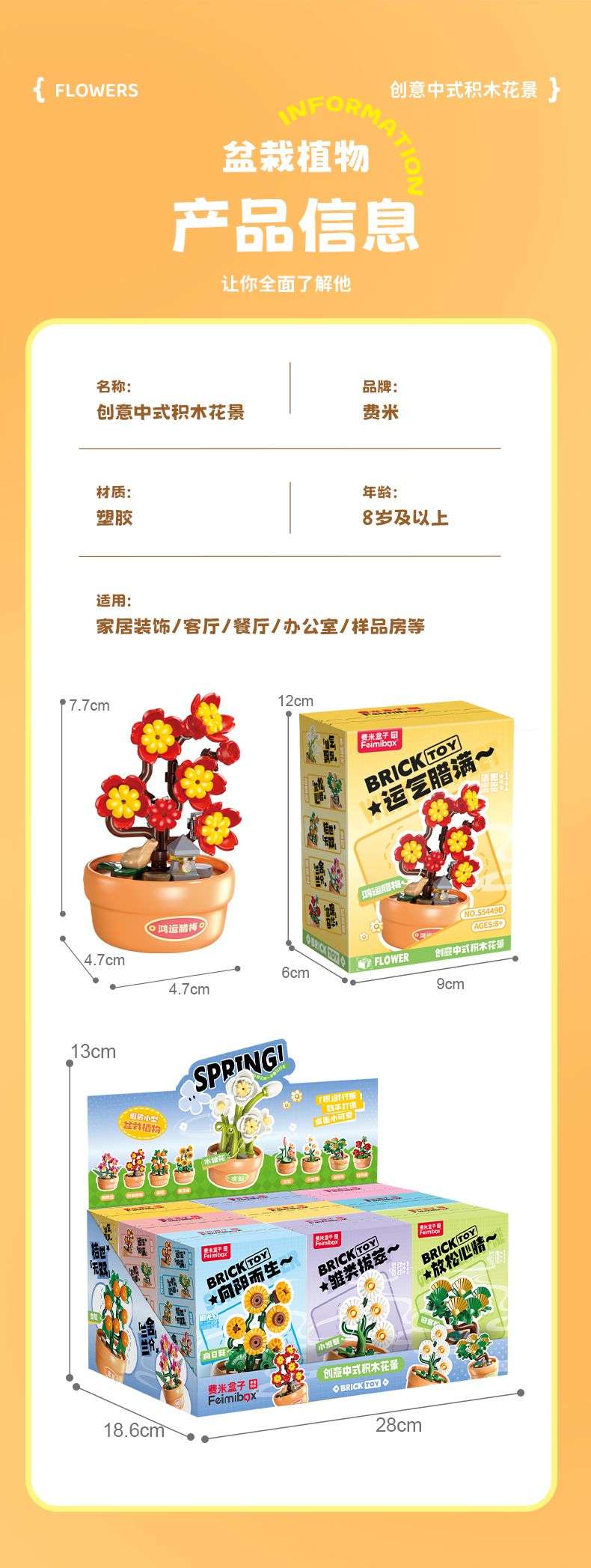 创意中式积木花景 9款 荷花、小雏菊、水仙、迎客松、向日葵、金桔、红玫瑰、鸿运腊梅、蝴蝶兰(费米Femibox S5449)