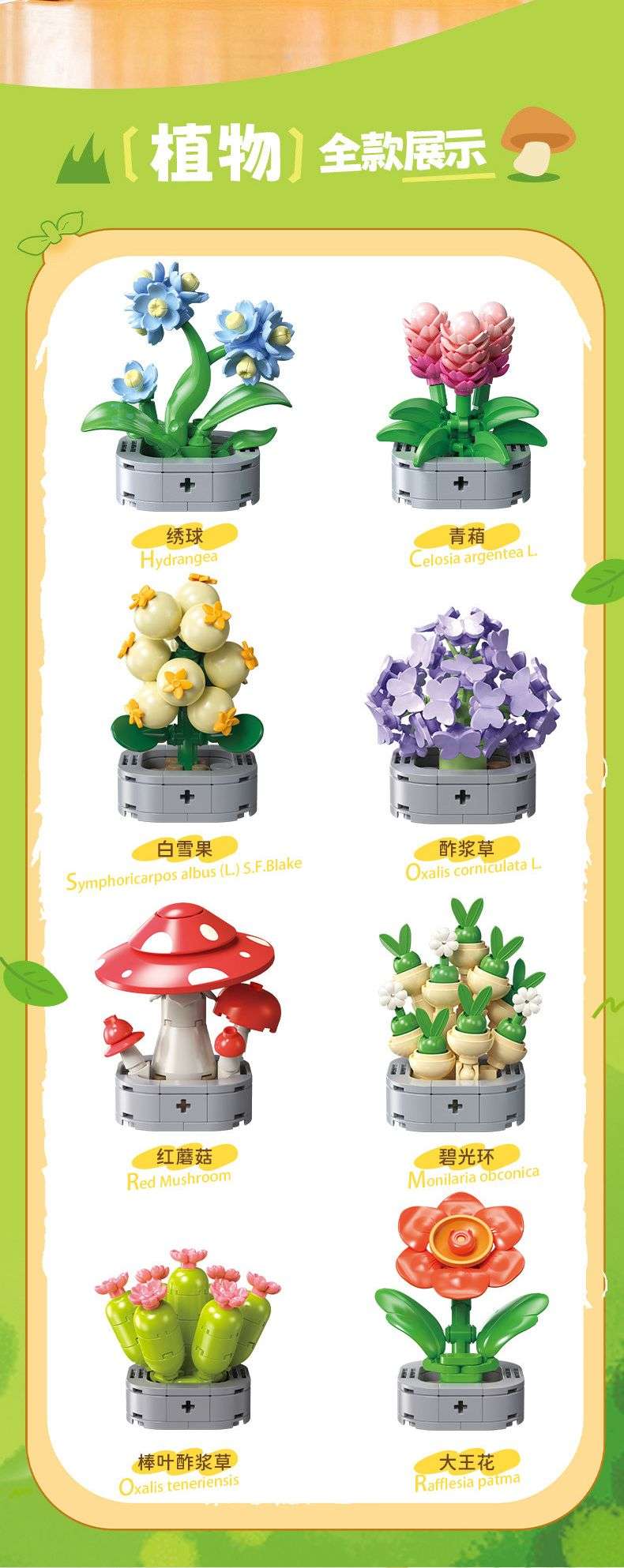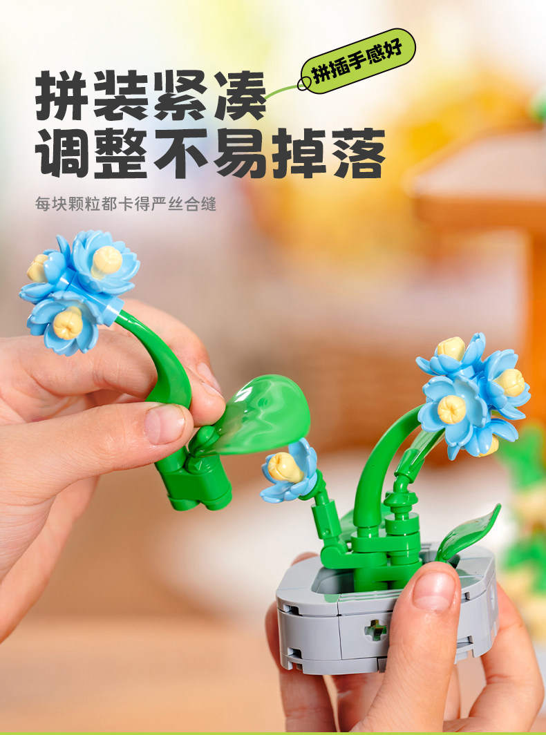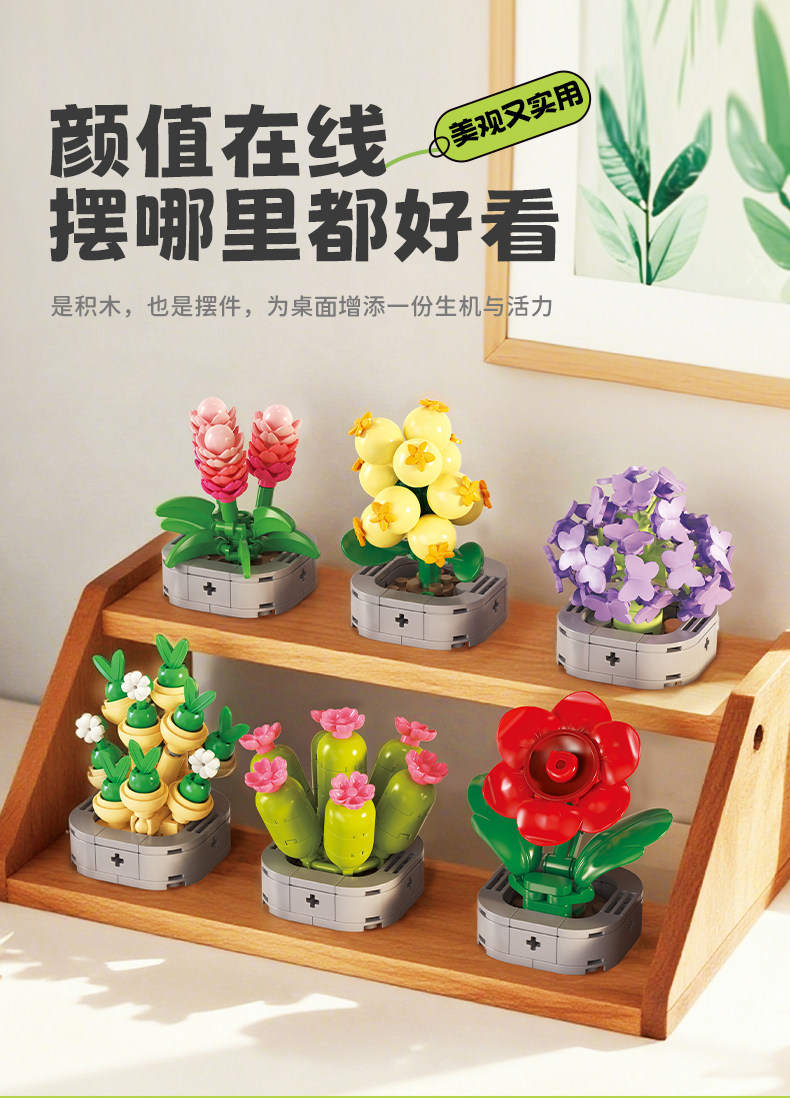 创意中式积木花景 9款 荷花、小雏菊、水仙、迎客松、向日葵、金桔、红玫瑰、鸿运腊梅、蝴蝶兰