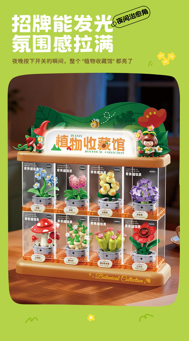 植物收藏馆属于花卉植物系列积木套组,整个套组包含 688 个积木颗粒。首发于2025年。