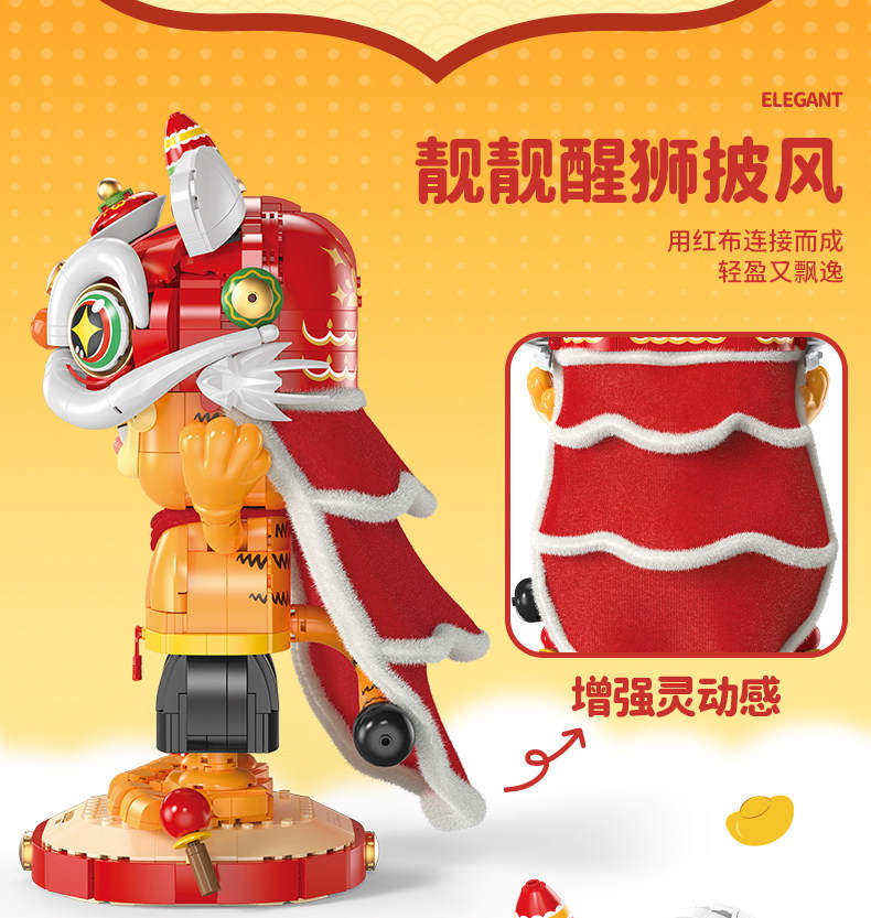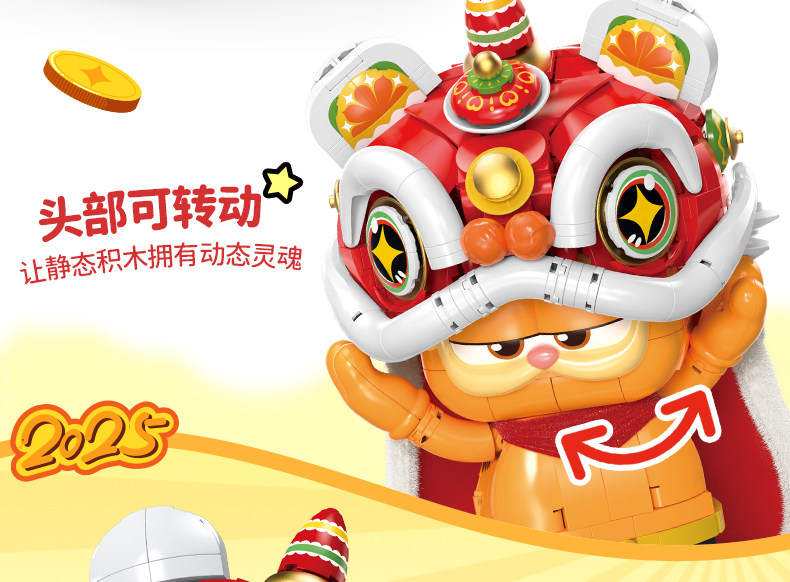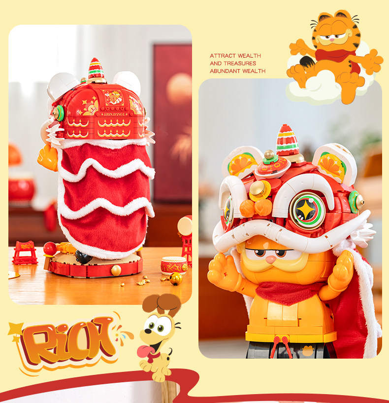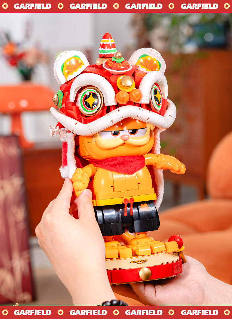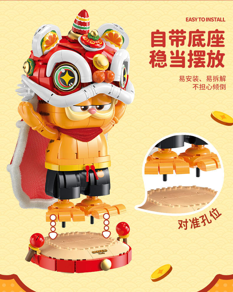 加菲猫家族:舞狮加菲猫(Garfield Family)属于影视游戏系列积木套组,整个套组包含 1369 个积木颗粒。首发于2025年。