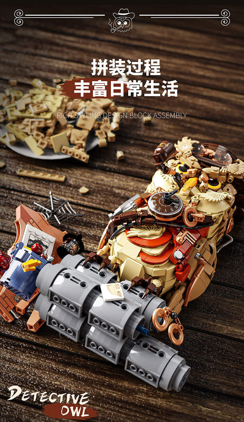 私家侦探猫头鹰(Detective)属于创意百变高手系列积木套组,整个套组包含 1286 个积木颗粒。首发于2025年。
