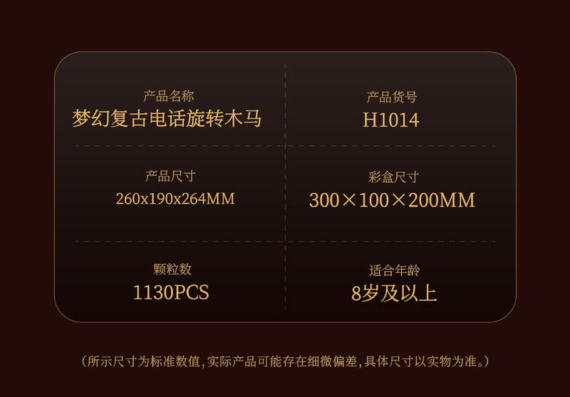 梦幻复古电话旋转木马属于创意百变高手系列积木套组,整个套组包含 1130 个积木颗粒。首发于2025年。