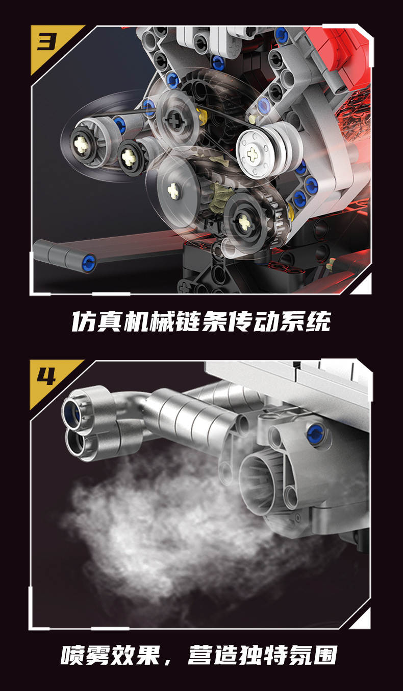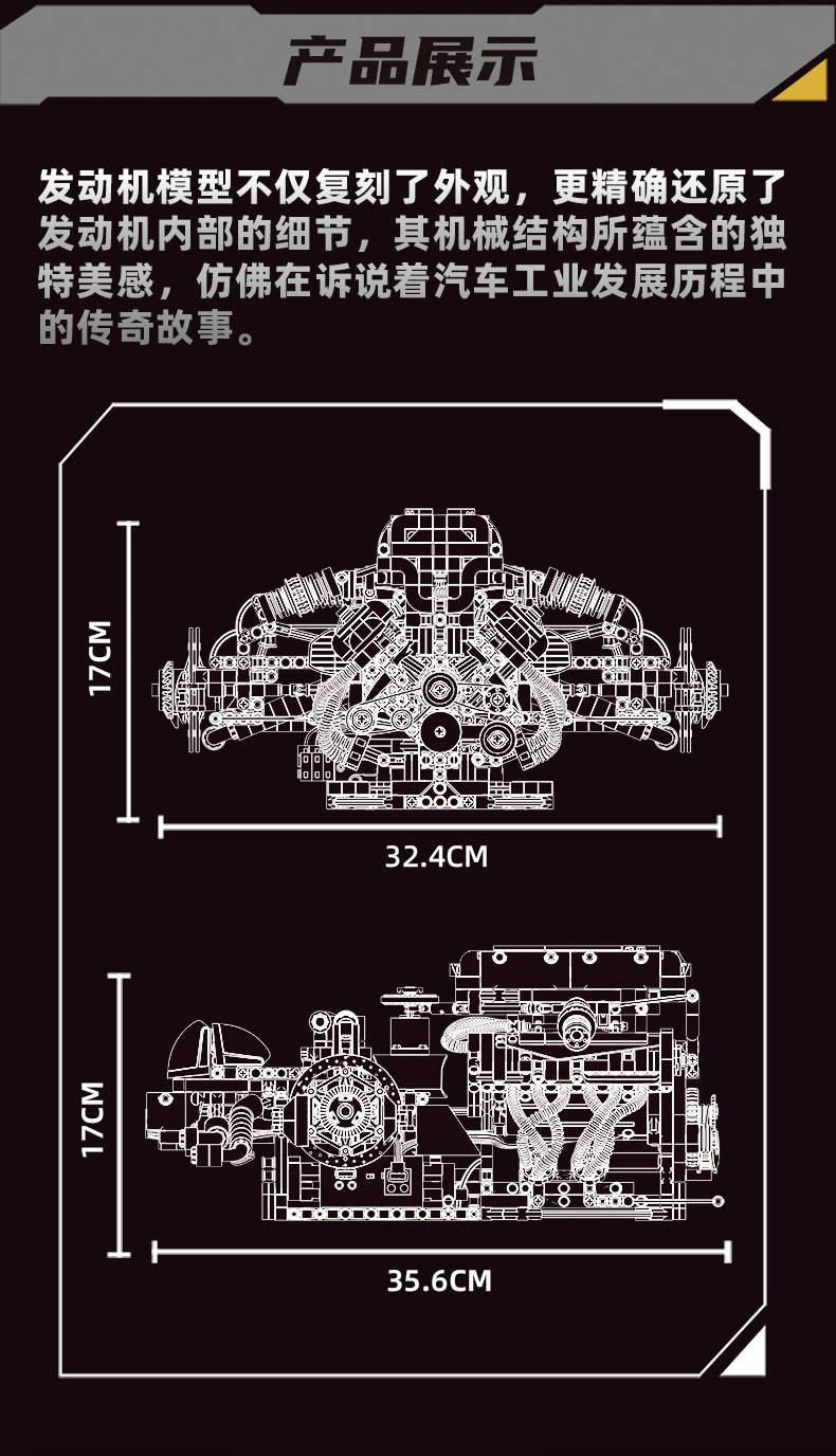 法拉力恩佐V12发动机属于机械组系列积木套组,整个套组包含 1610 个积木颗粒。首发于2025年。