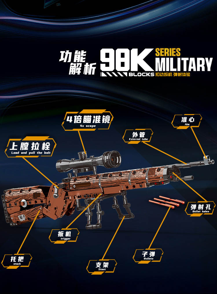 98K 步枪属于积木枪系列积木套组,整个套组包含 432 个积木颗粒。首发于2025年。