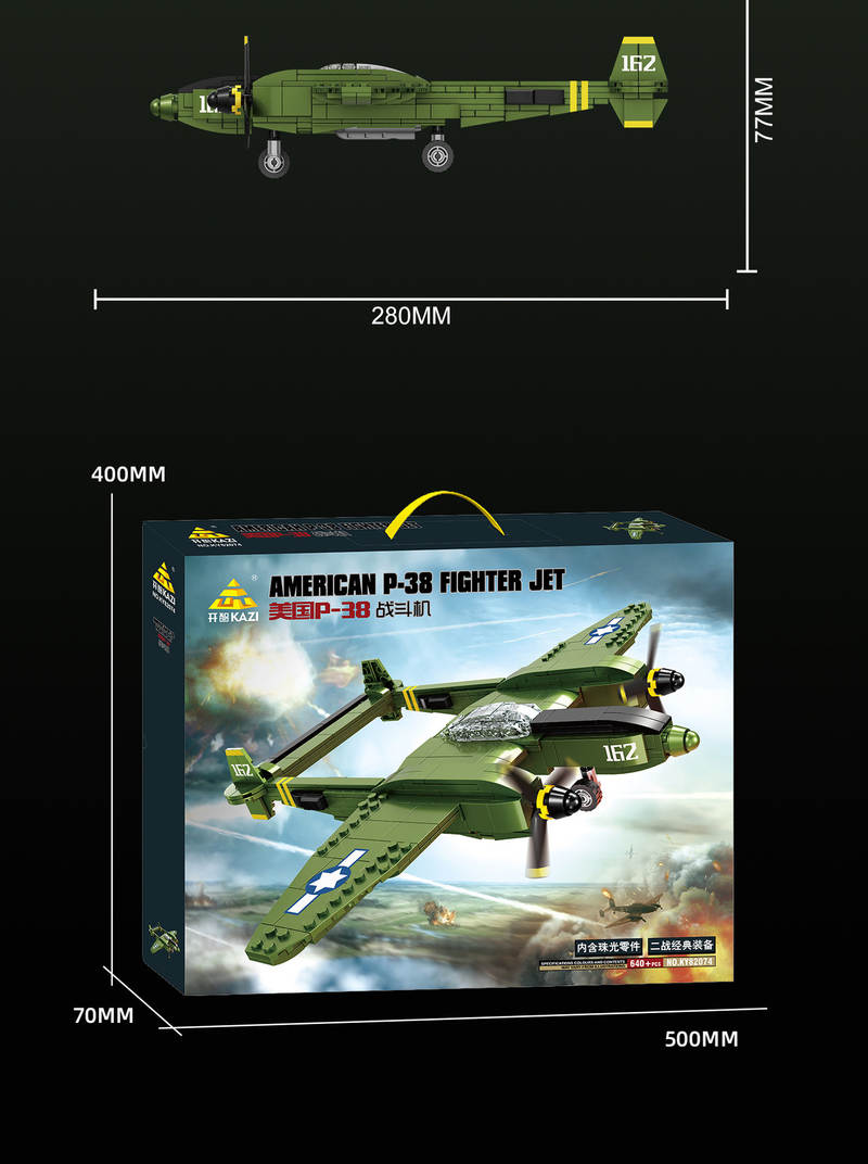 美国P-38战斗机(American P-38 Fighter Jet)(开智KAZI/高博乐GBL/博智BOZHI KY82074)