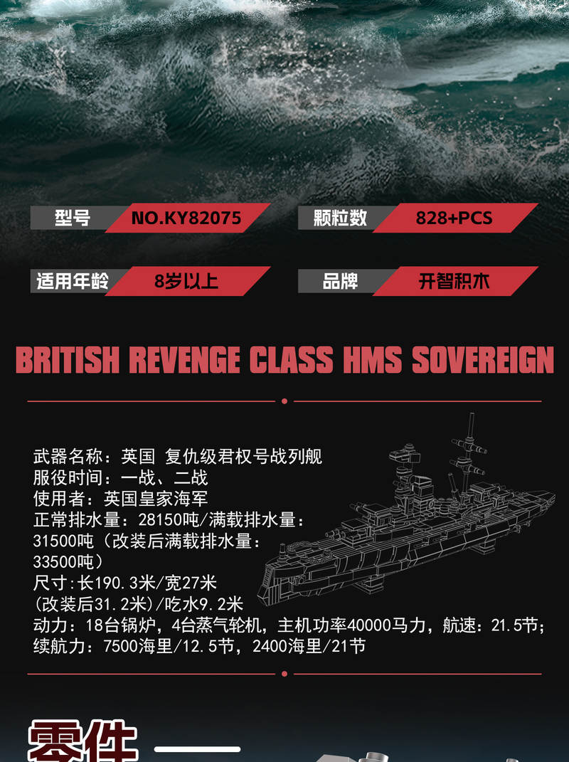 英国 复仇级君权号战列舰(British Revenge Class HMS Sovereign)(开智KAZI/高博乐GBL/博智BOZHI KY82075)