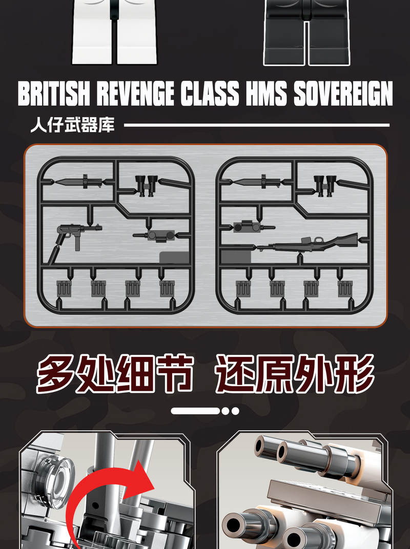 英国 复仇级君权号战列舰(British Revenge Class HMS Sovereign)属于军事系列积木套组,整个套组包含 828 个积木颗粒。首发于2025年。