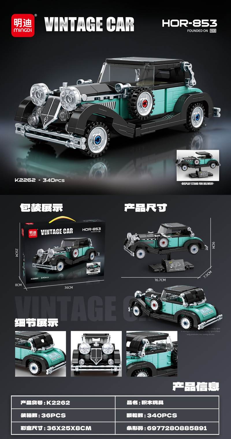 霍希 Horch 853 复古积木车(Vintage Car HOR-853)(明迪minGDi/磊宝LEIBAO K2262)