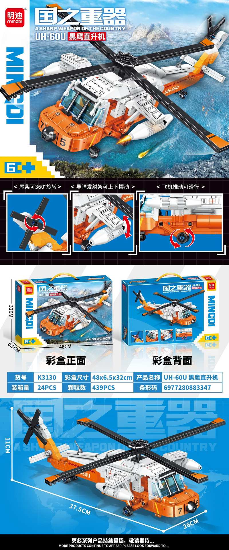 国之重器:UH-60U黑鹰直升机(明迪minGDi/磊宝LEIBAO K3130)