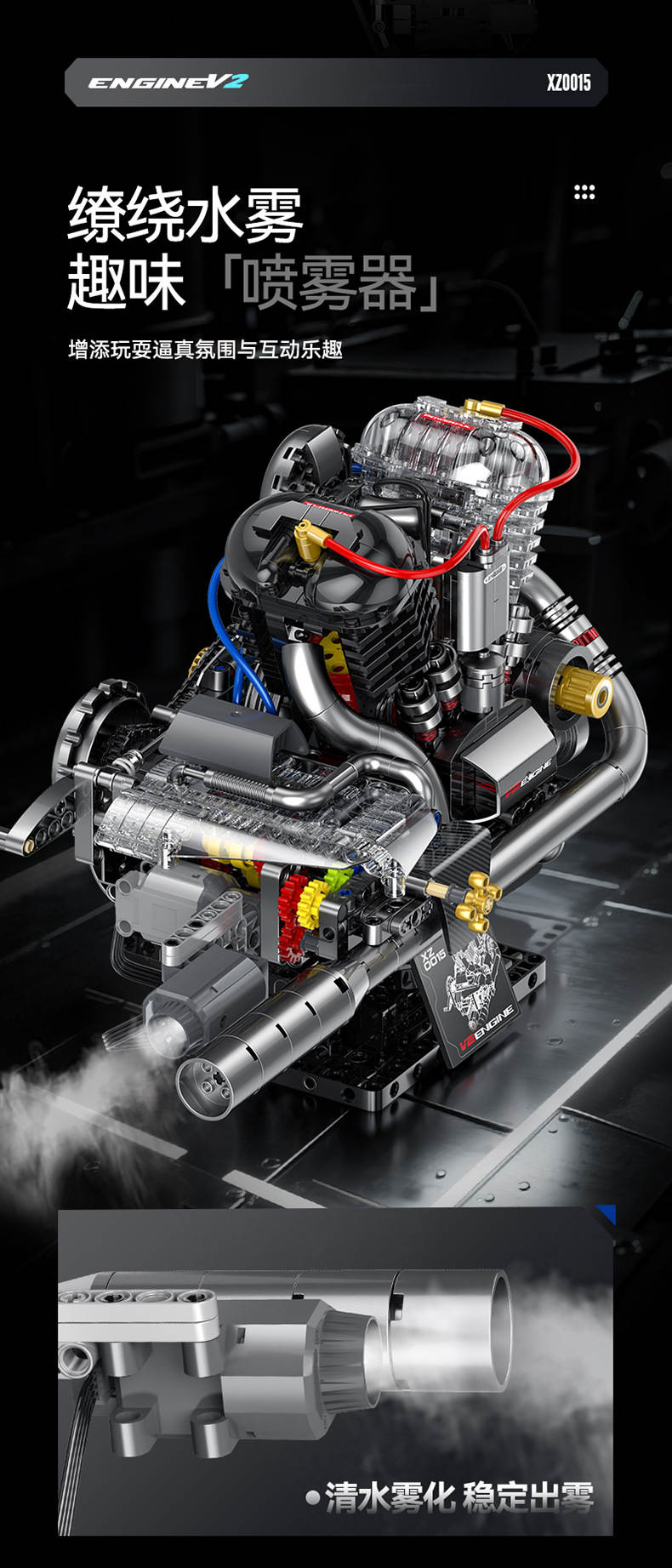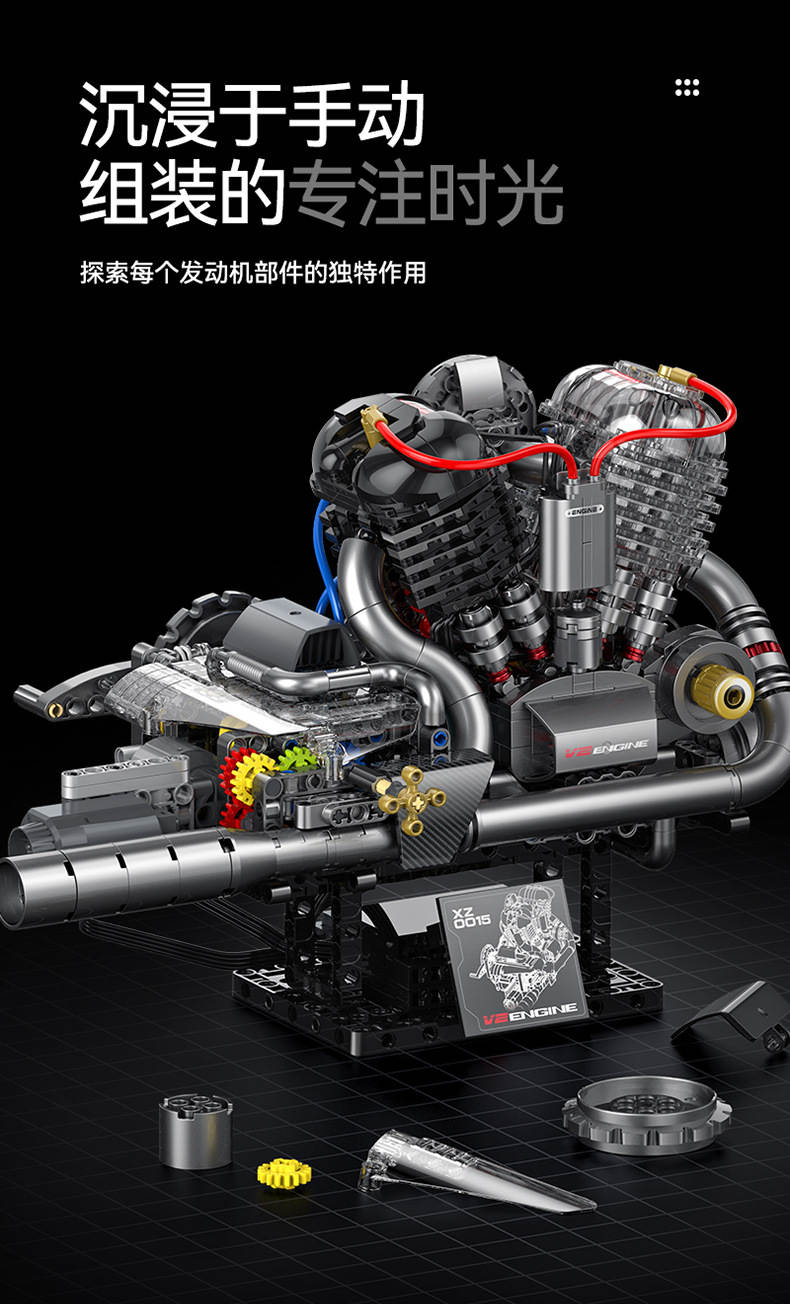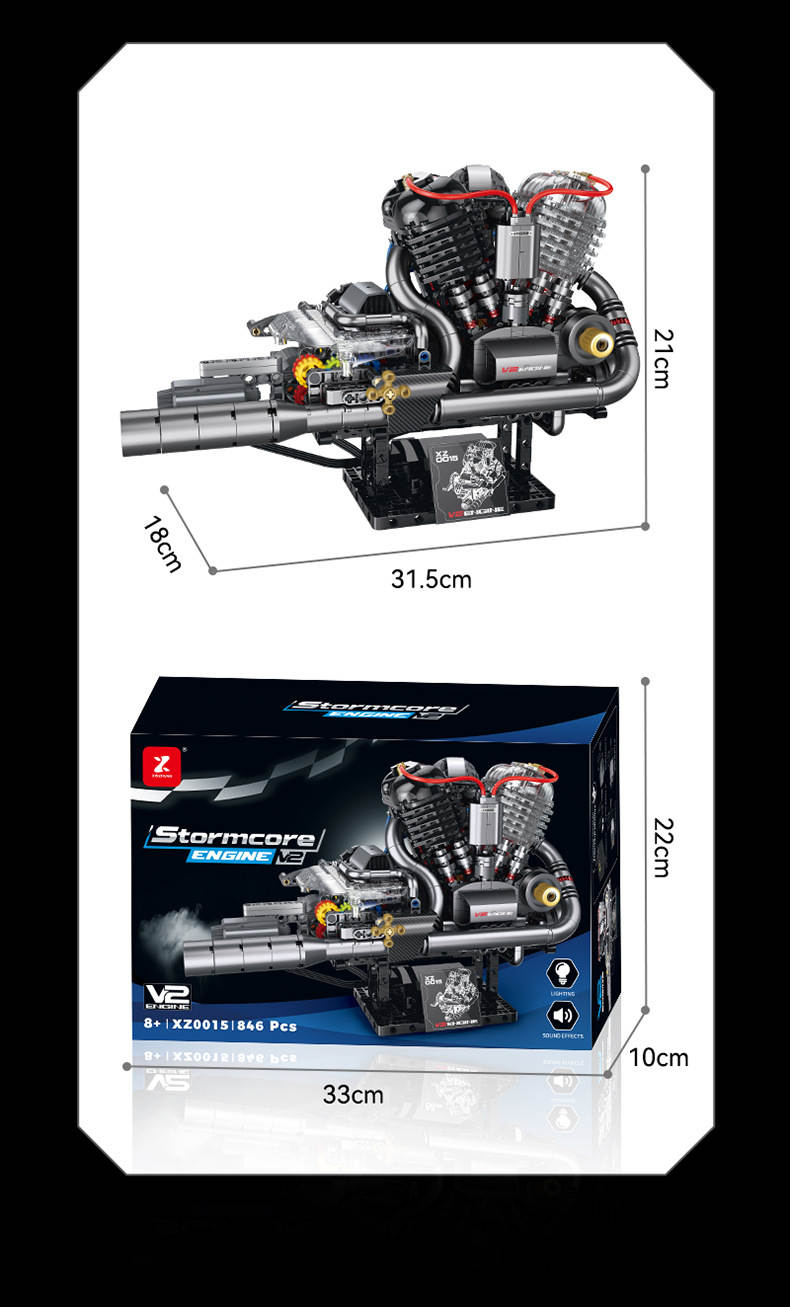 哈雷锅盖头发动机(Stormcore V2 Engine)属于机械组系列积木套组,整个套组包含 846 个积木颗粒。首发于2025年。