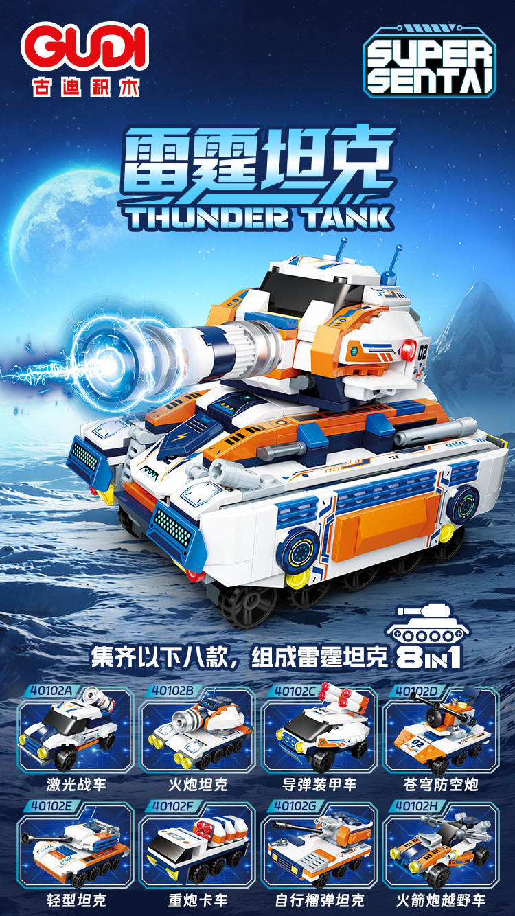 超积战队:雷霆坦克 8款组合(古迪GUDI/新乐新 40102)
