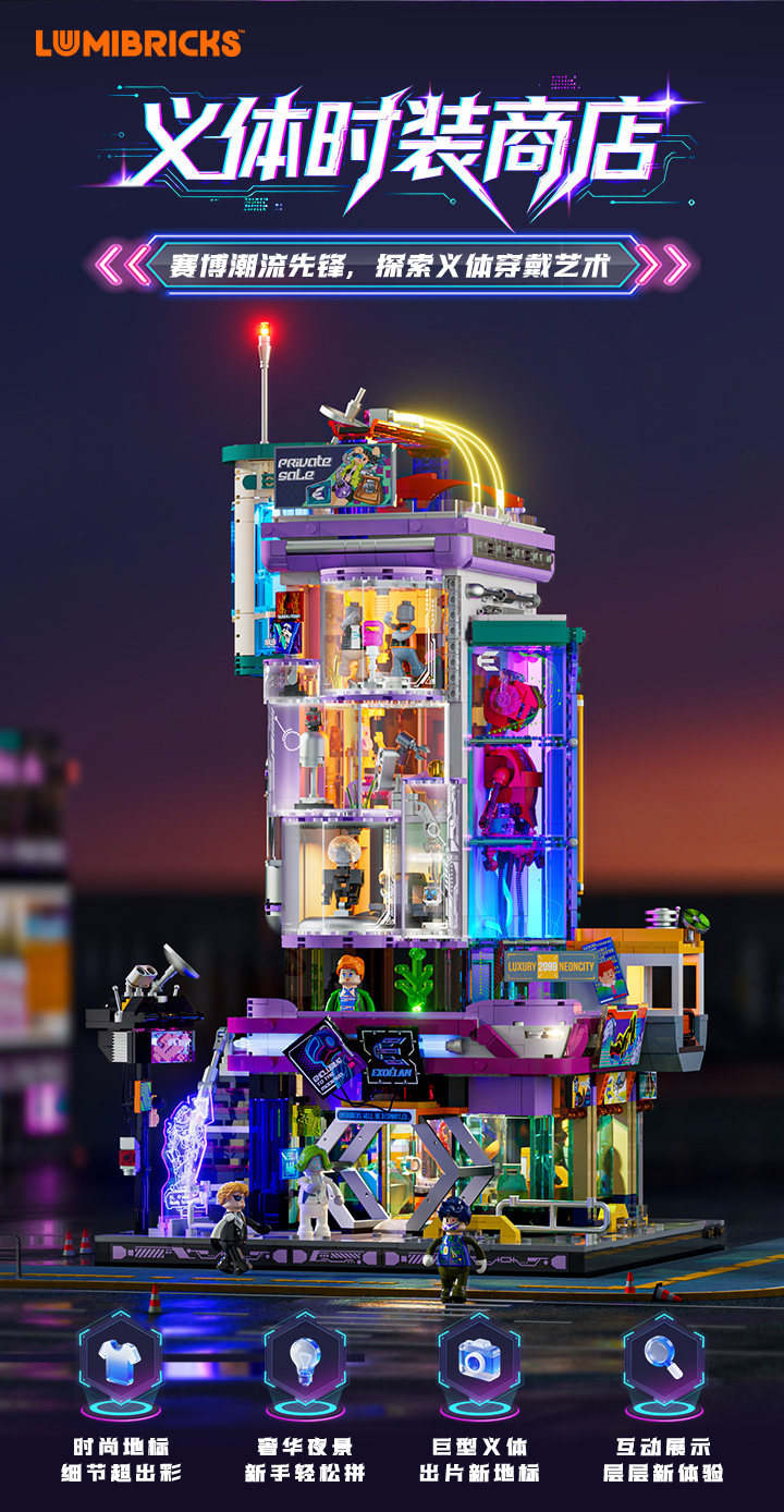 赛博朋克霓虹城:义体时装商店 赛博时装展馆(Cyber Couture Galleria)(灯搭Lumibricks/完乐FunWhole 17007)