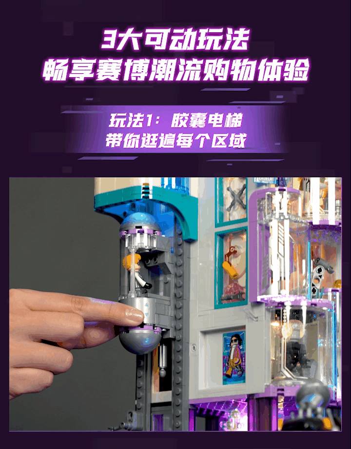 赛博朋克霓虹城:义体时装商店 赛博时装展馆(Cyber Couture Galleria)属于街景系列积木套组,整个套组包含 2701 个积木颗粒。首发于2026年。