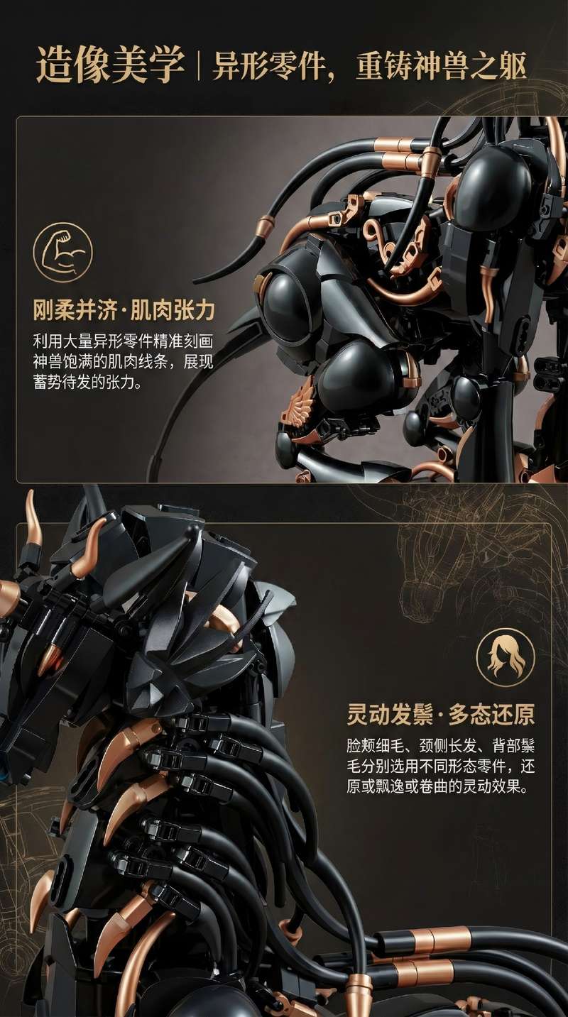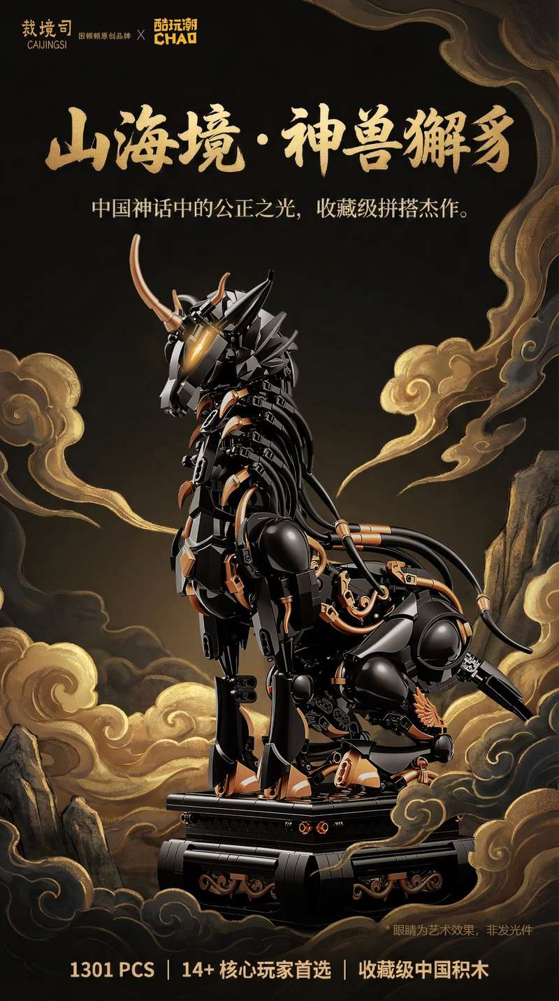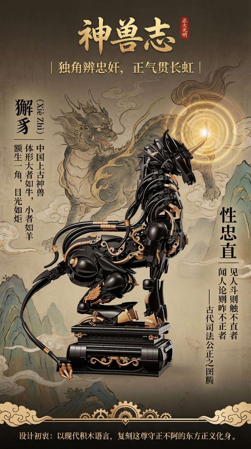 山海境 神兽獬豸(xiè zhì)属于创意百变高手系列积木套组,整个套组包含 1301 个积木颗粒。首发于2026年。