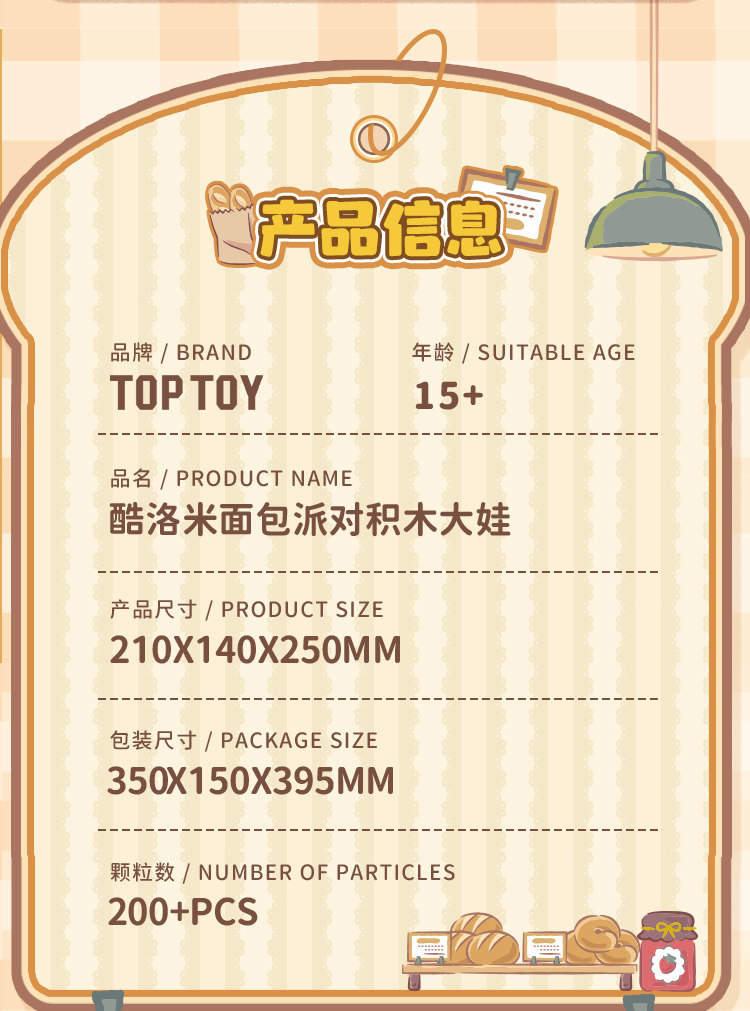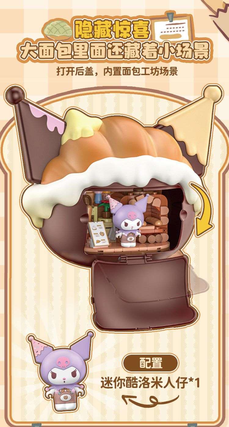 酷洛米面包派对大娃(Kuromi Bread Party)属于主题系列系列积木套组,整个套组包含 200 个积木颗粒。首发于2025年。