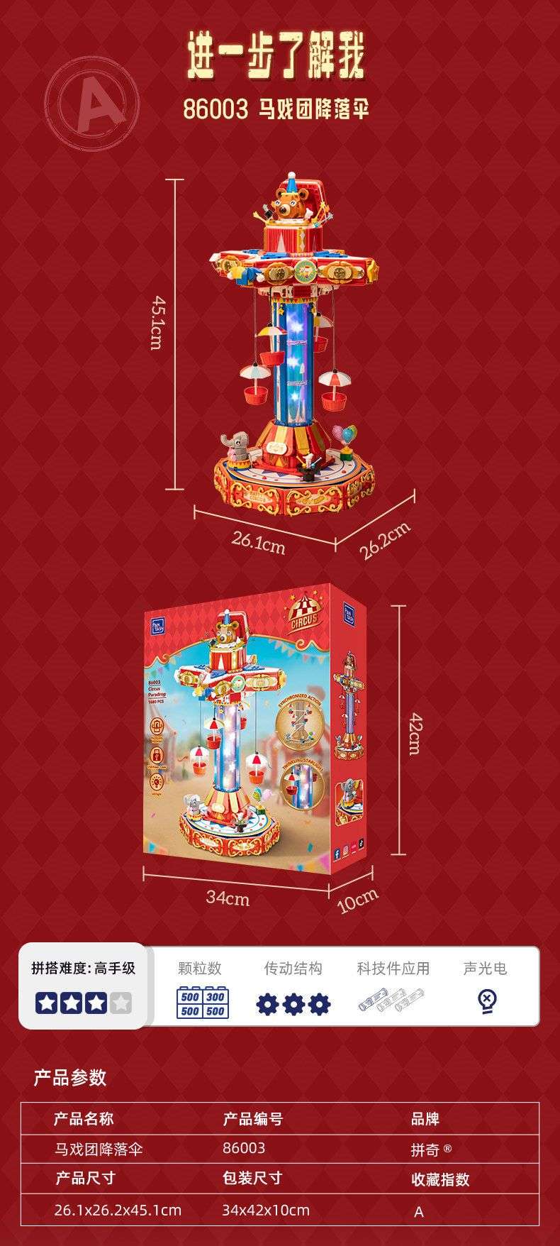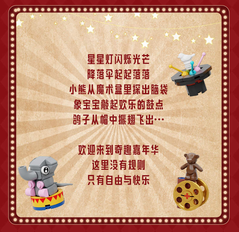 马戏团降落伞属于游乐场系列积木套组,整个套组包含 1440 个积木颗粒。首发于2026年。