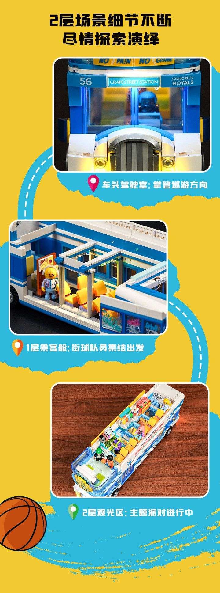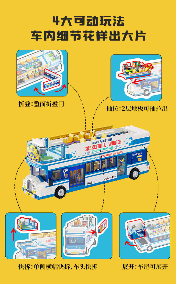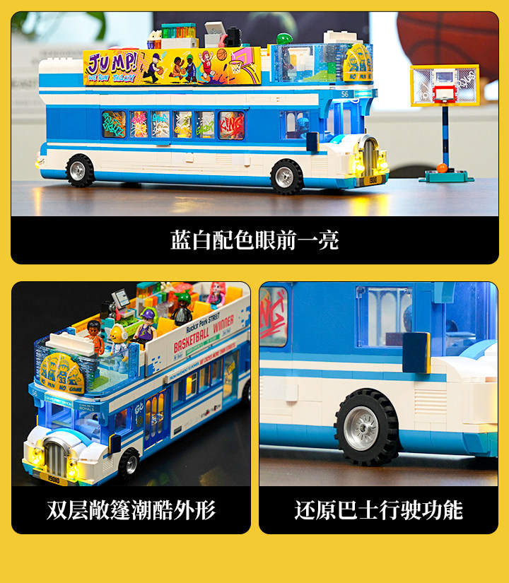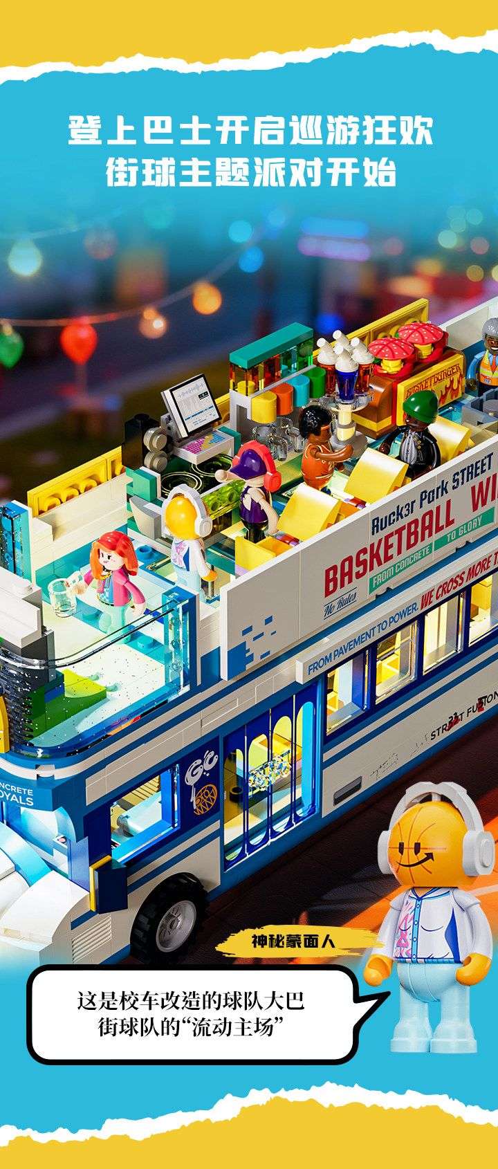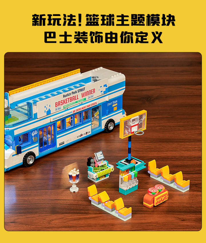 美式街头:街球巴士(Streetball Tour Bus)属于城市系列积木套组,整个套组包含 1170 个积木颗粒。首发于2026年。