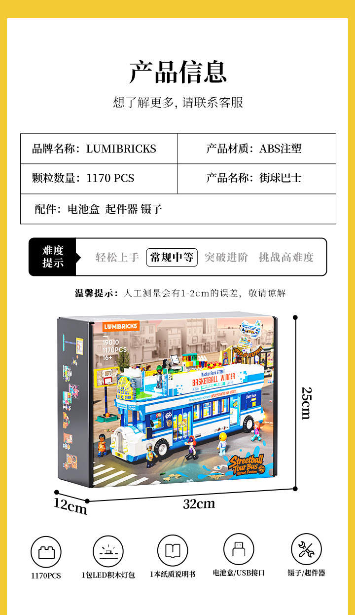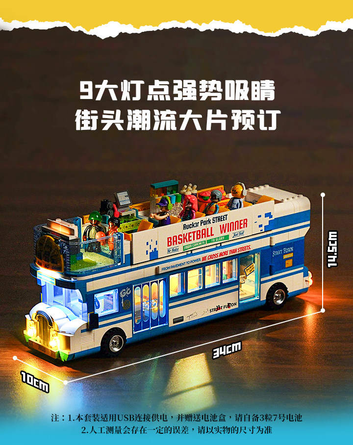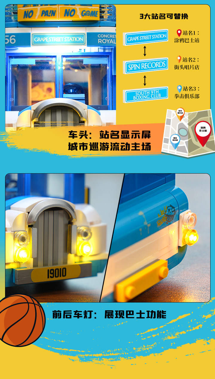 美式街头:街球巴士(Streetball Tour Bus)(灯搭Lumibricks/完乐FunWhole 19010)