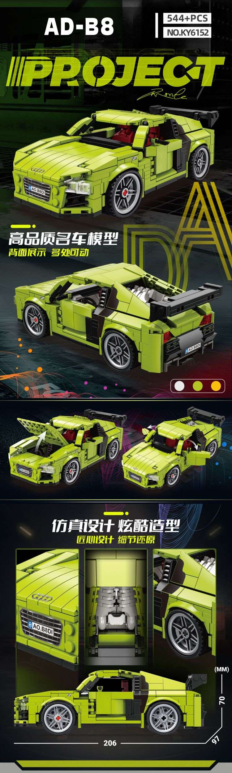 名车计划:AD-B8 跑车属于超级赛车系列积木套组,整个套组包含 544 个积木颗粒。首发于2025年。