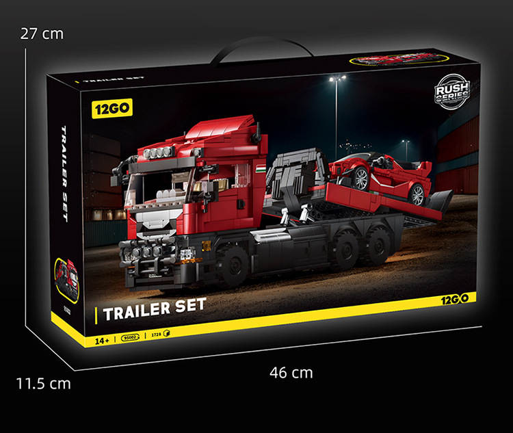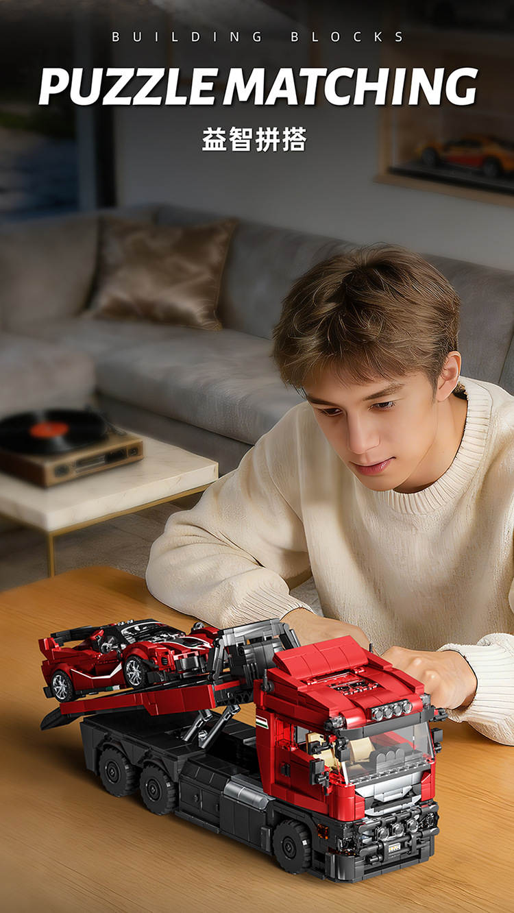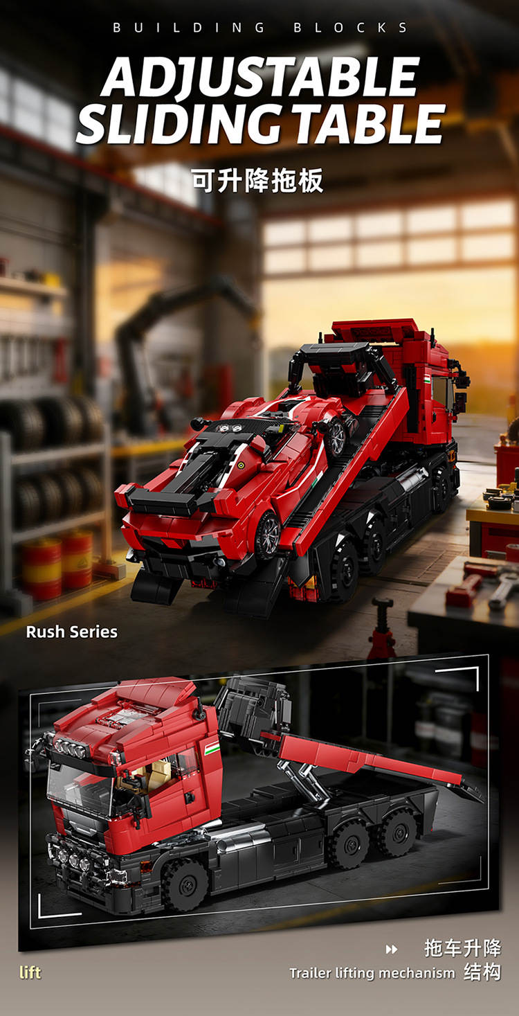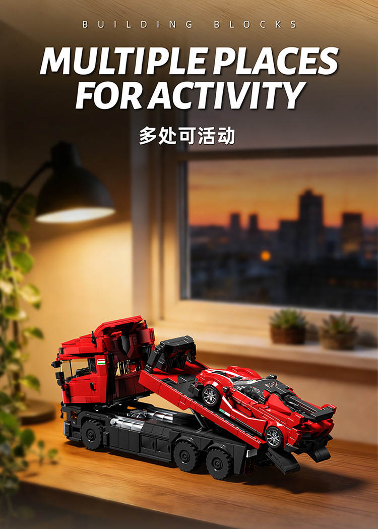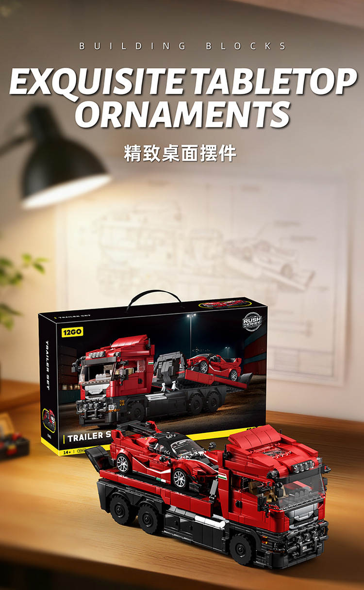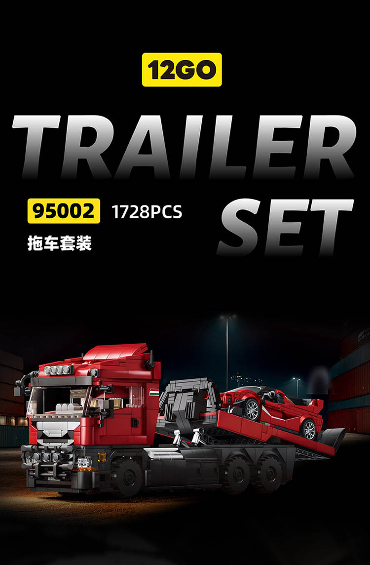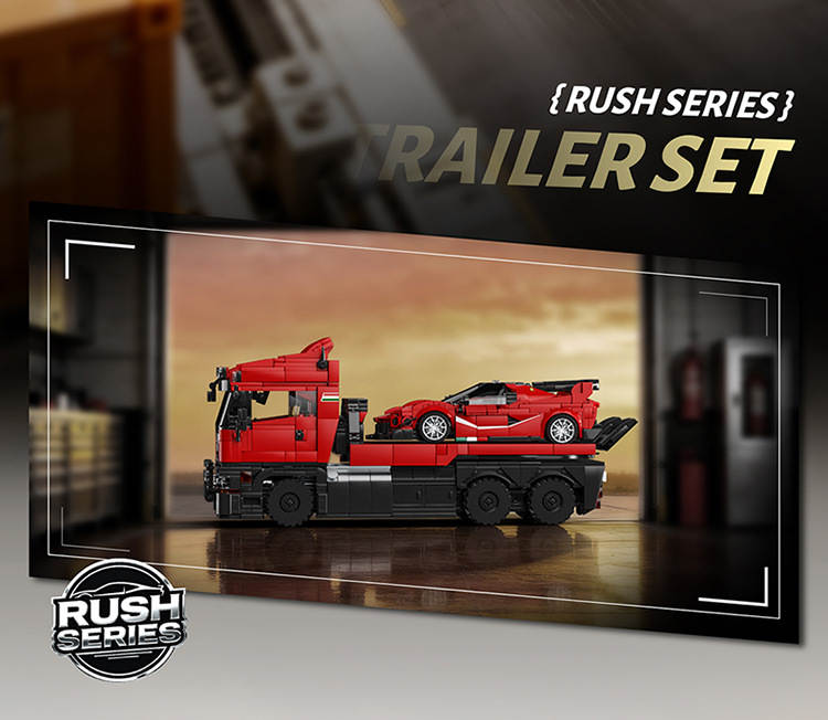斯堪尼亚拖头车+拉法FXXK跑车 拖车套装(Trailer Set)属于车模系列积木套组,整个套组包含 1728 个积木颗粒。首发于2026年。