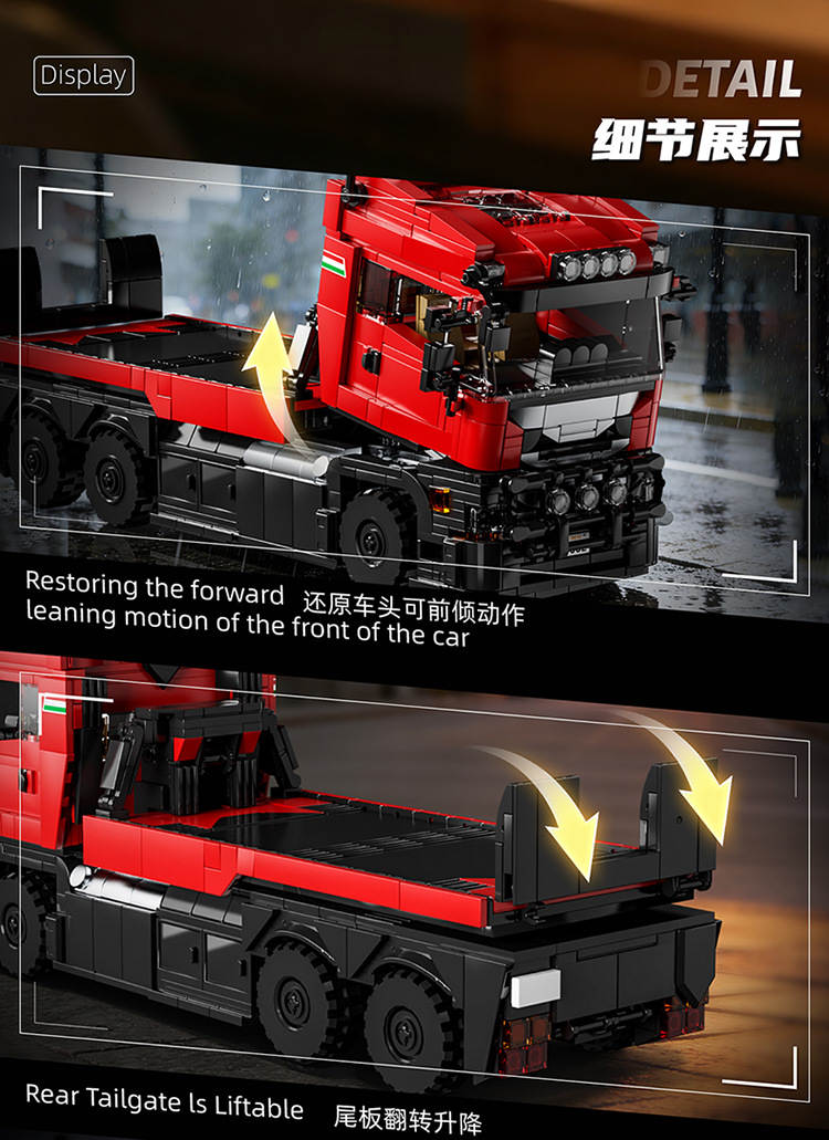 资料【积木小站】斯堪尼亚拖头车+拉法FXXK跑车 拖车套装