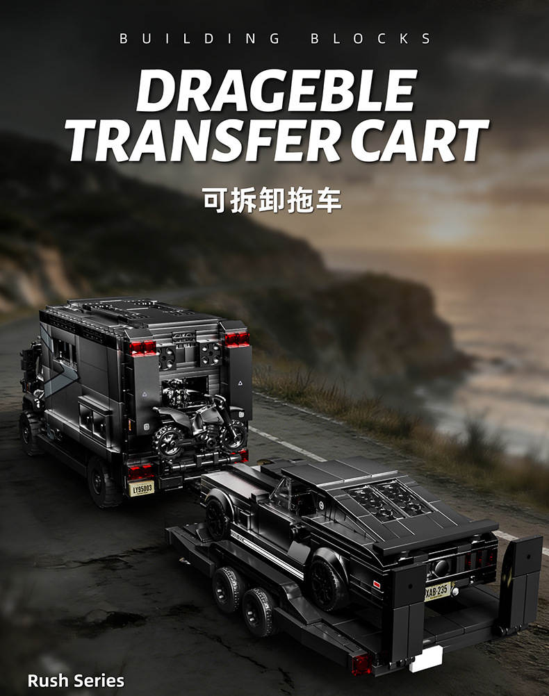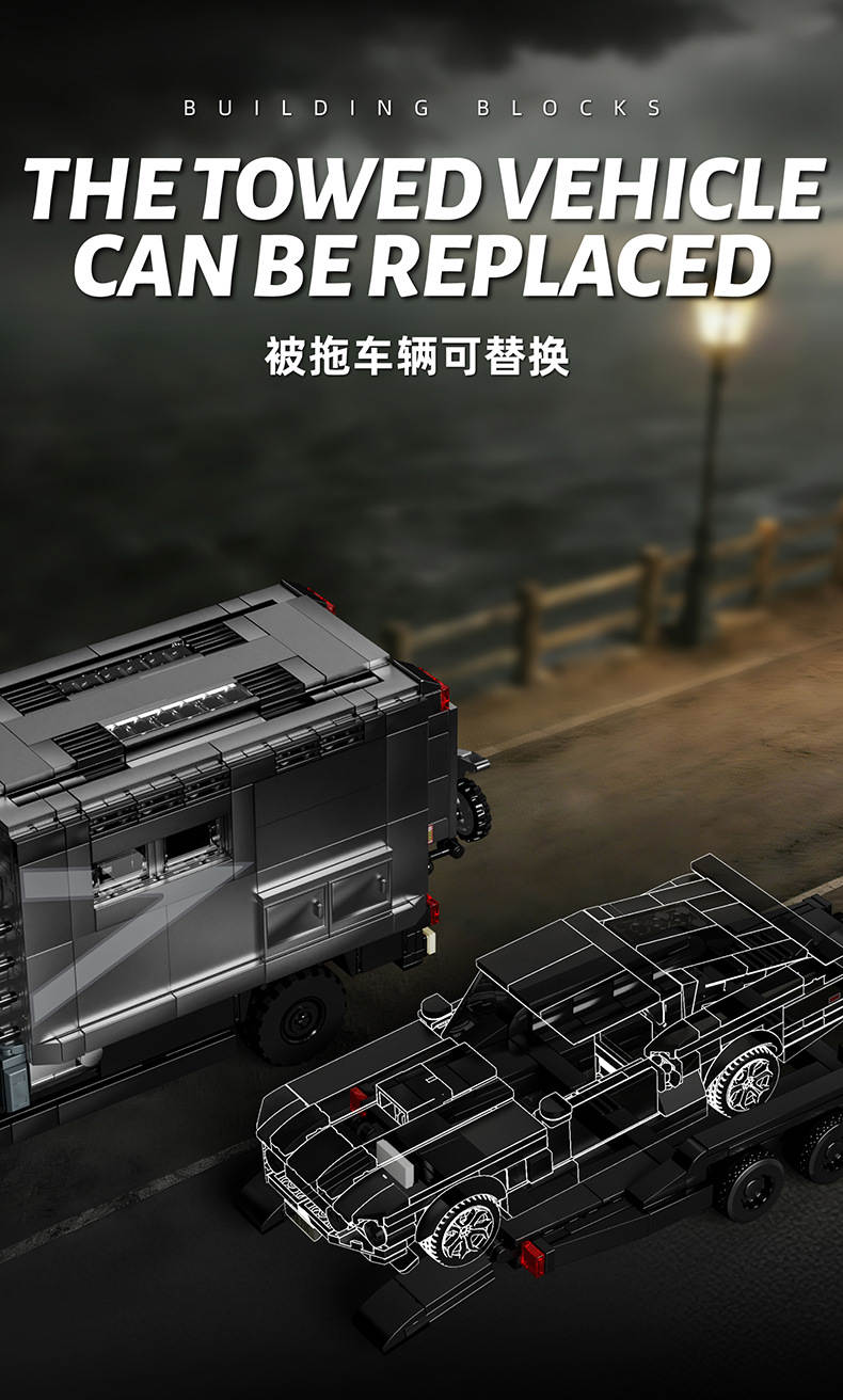 【积木小站】乌尼莫克房车+超跑 拖车套装