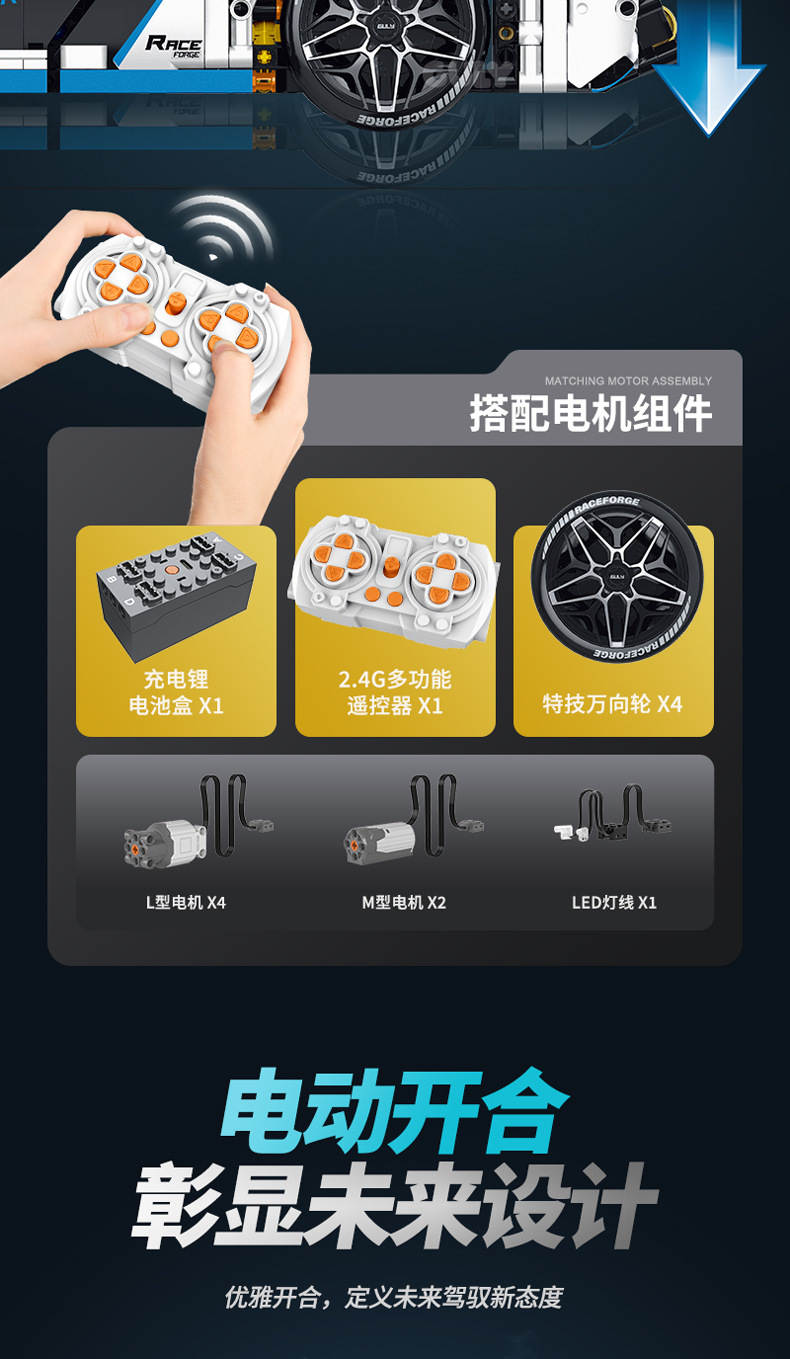 麦轮超跑 1:10属于机械组系列积木套组,整个套组包含 2138 个积木颗粒。首发于2026年。