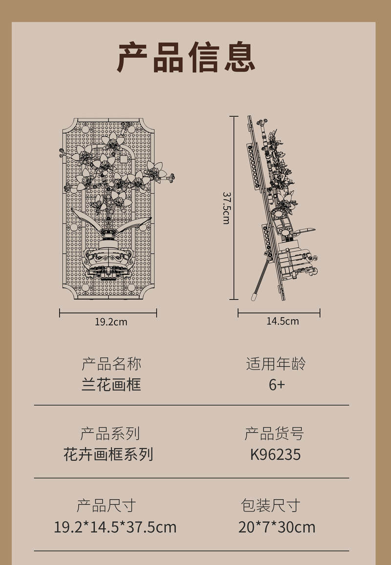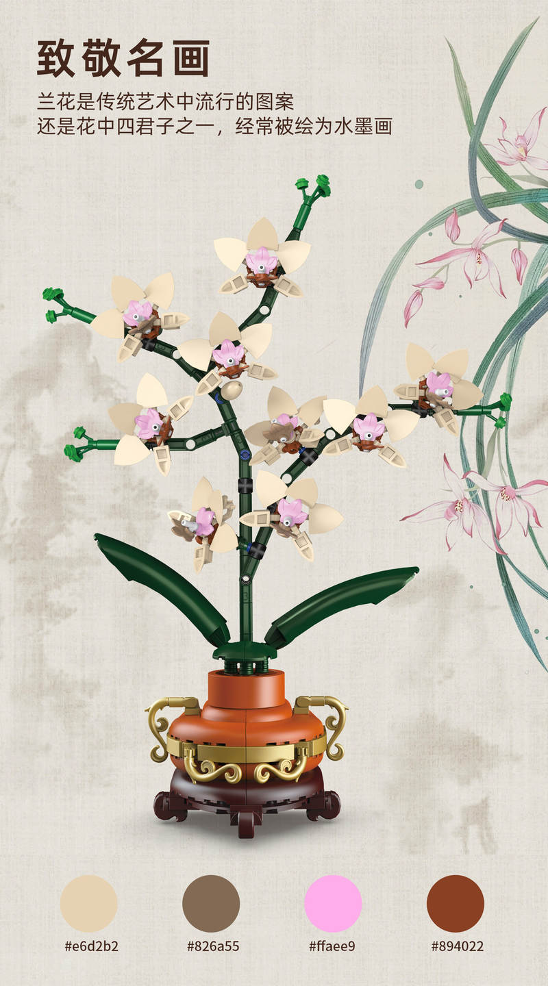 兰花挂画(Photo Frame)属于艺术品系列积木套组,整个套组包含 531 个积木颗粒。首发于2026年。
