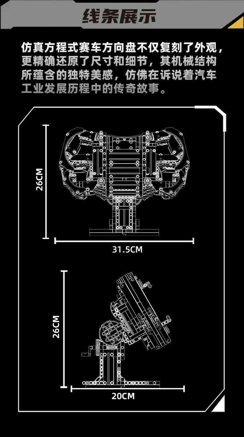 迈凯伦方程式赛车方向盘属于机械组系列积木套组,整个套组包含 935 个积木颗粒。首发于2026年。