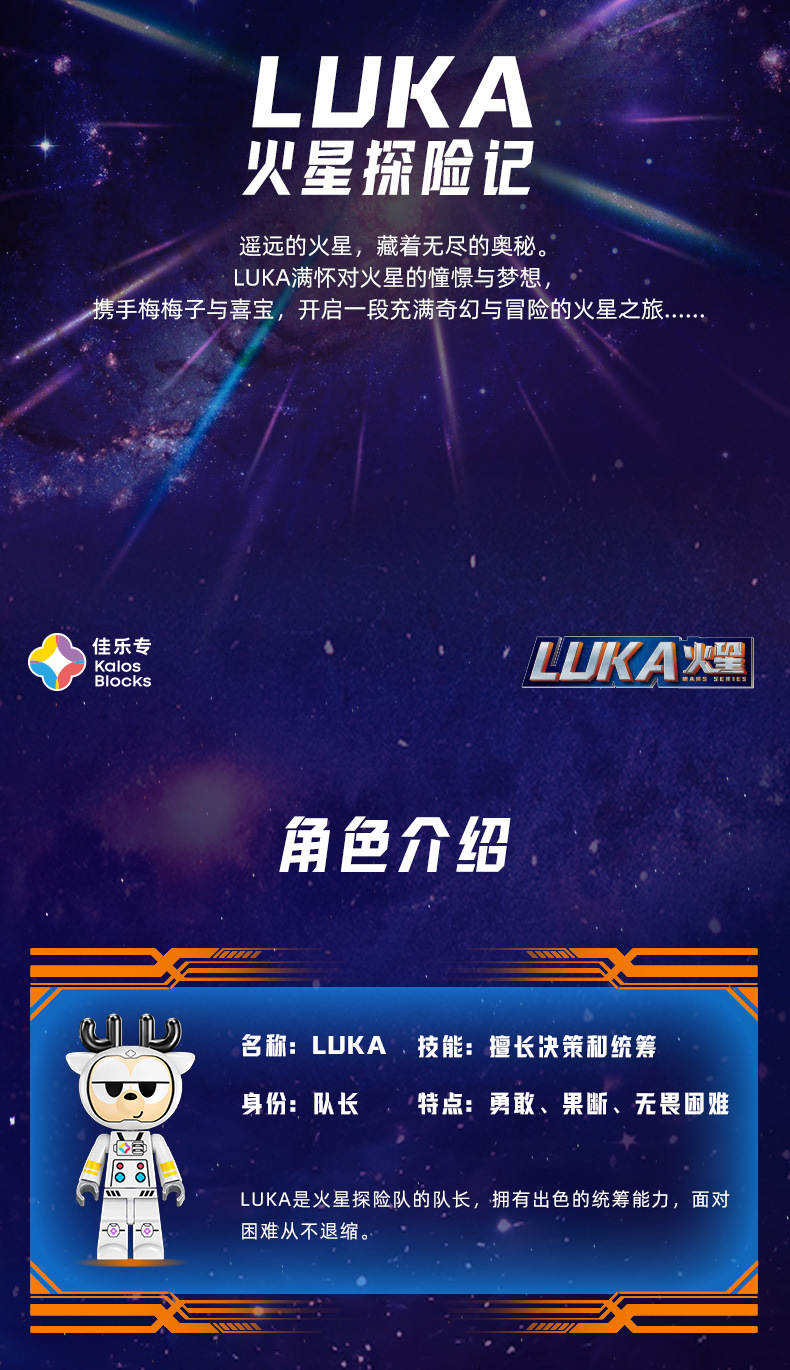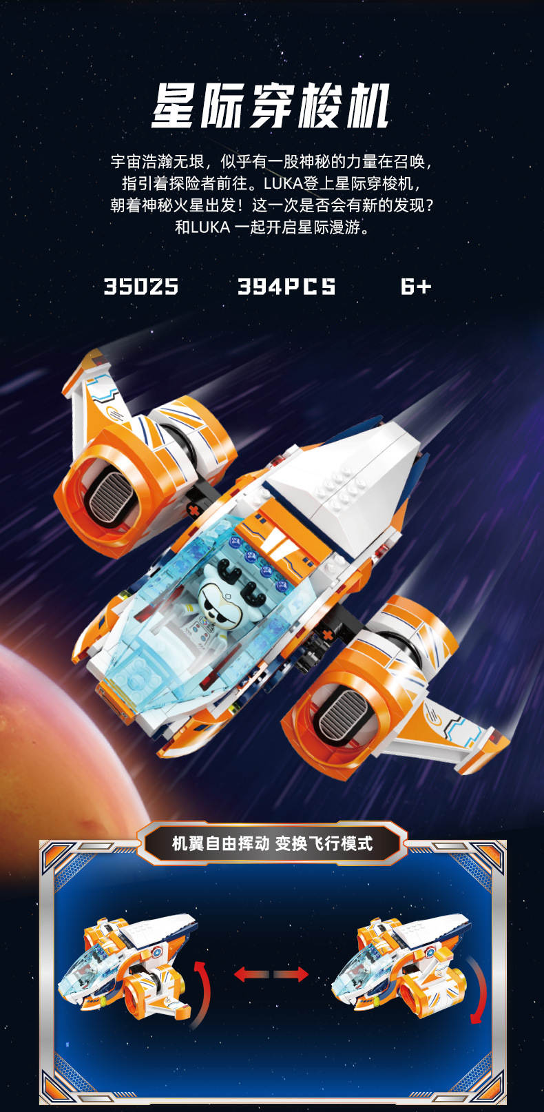 LUKA火星探险记:星际穿梭机属于主题系列系列积木套组,整个套组包含 394 个积木颗粒。首发于2023年。
