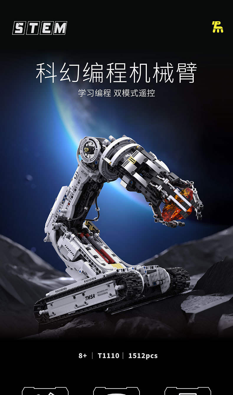 科幻编程机械臂属于机械组系列积木套组,整个套组包含 1512 个积木颗粒。首发于2026年。