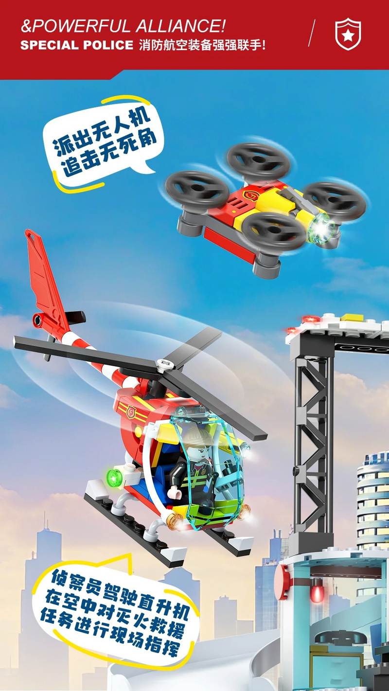 774PCS。全套复刻,增加了救援直升机。