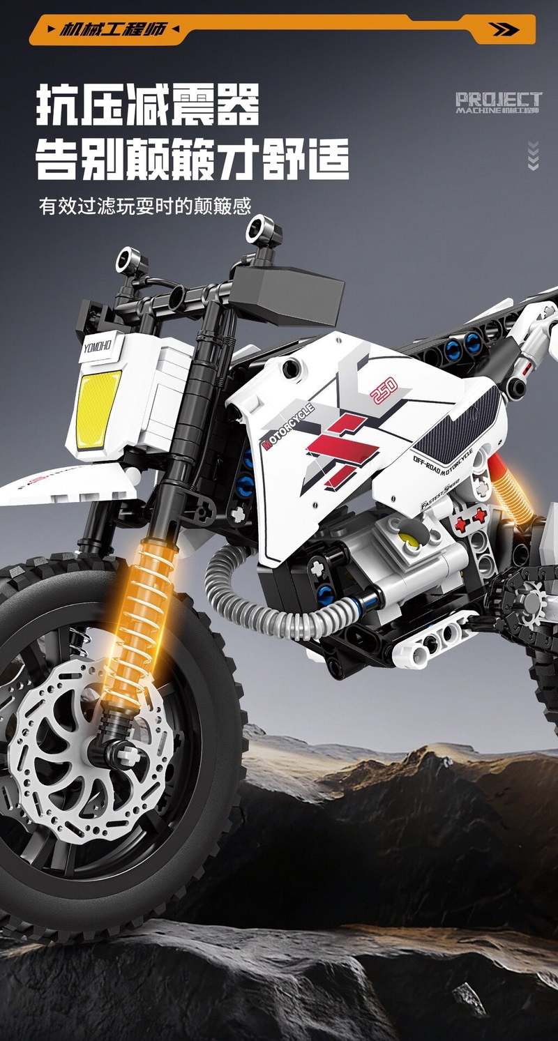 凌木 DR 摩托车属于机械组系列积木套组,整个套组包含 309 个积木颗粒。首发于2026年。