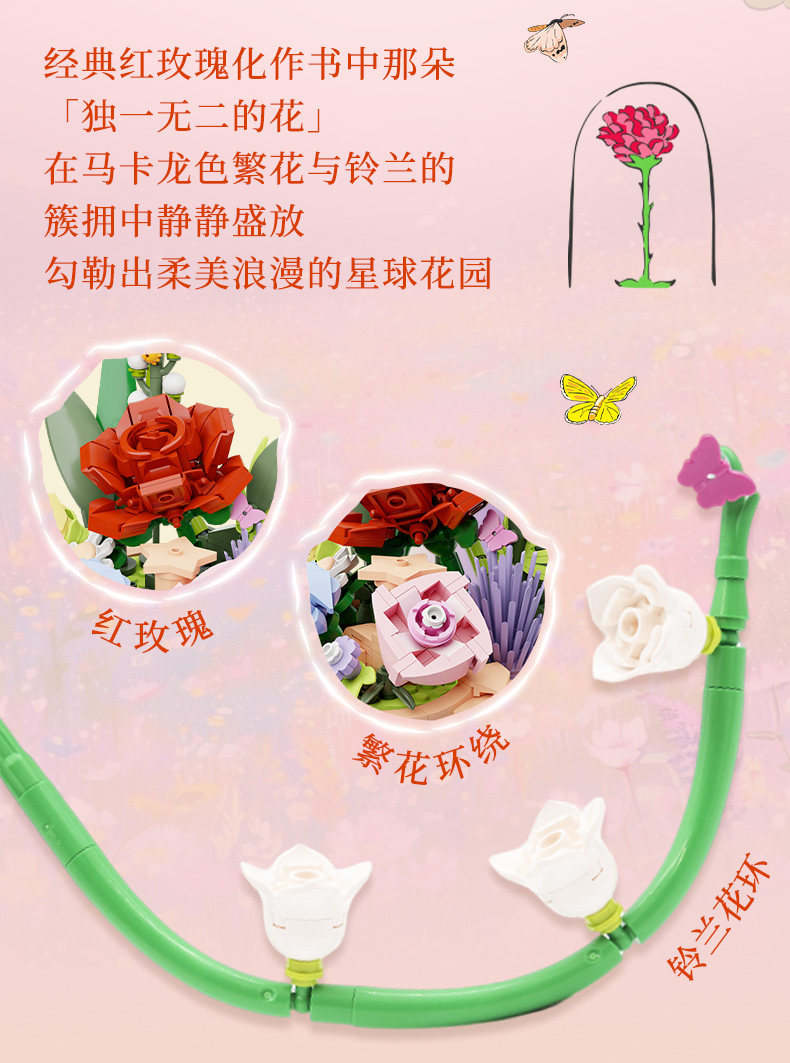小王子 玫瑰物语(Le Petit Prince Rose Tale)属于主题系列系列积木套组,整个套组包含 304 个积木颗粒。首发于2026年。