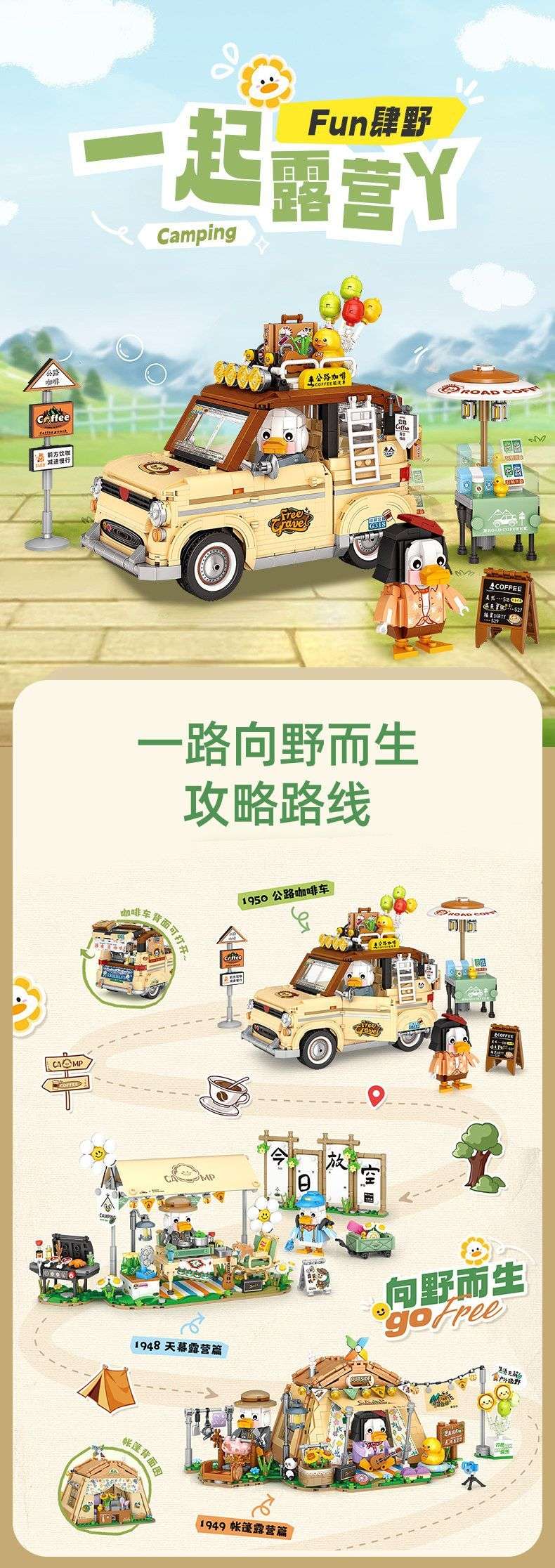 一起露营丫:公路咖啡车(Camping)属于主题系列系列积木套组,整个套组包含 1646 个积木颗粒。首发于2024年。