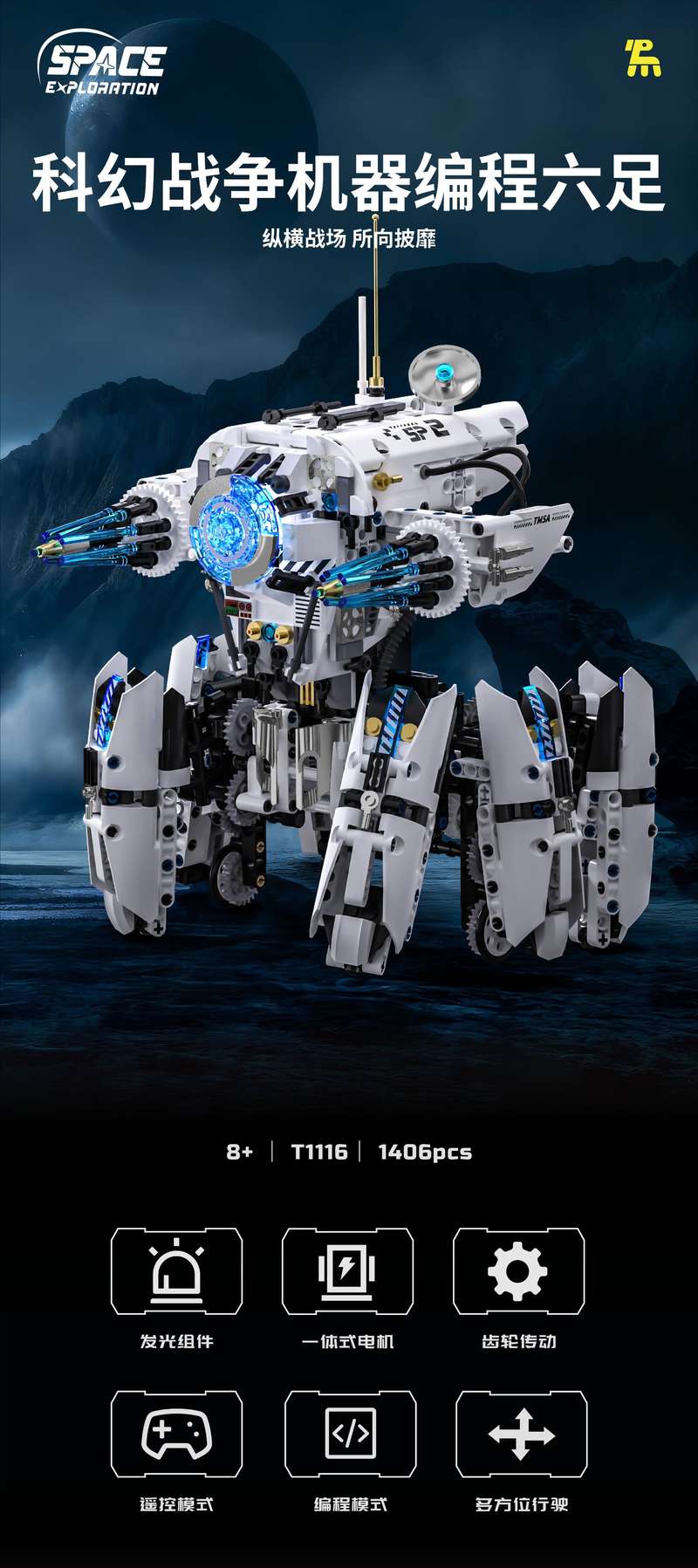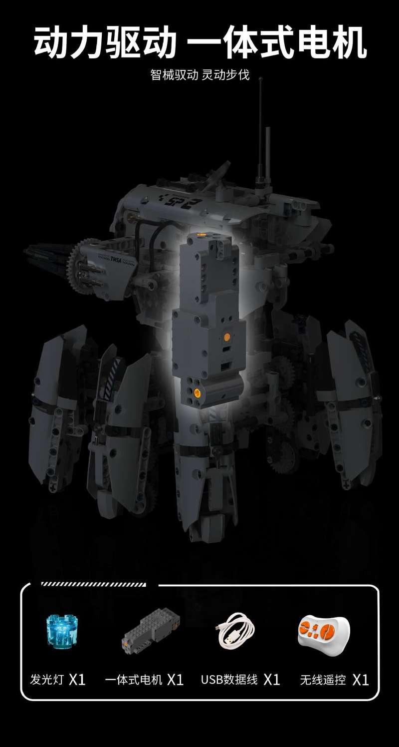 科幻战争编程六足电动机器人属于机械组系列积木套组,整个套组包含 1406 个积木颗粒。首发于2026年。