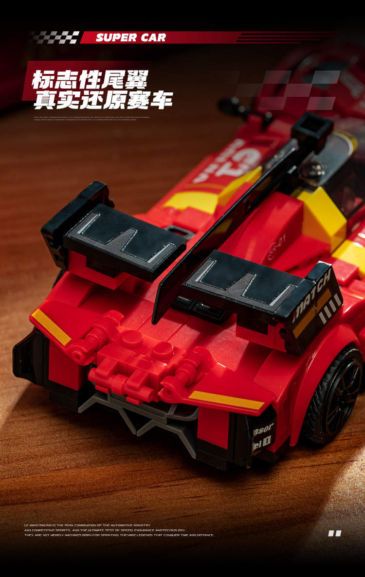 法拉利 499P 8格车属于超级赛车系列积木套组,整个套组包含 477 个积木颗粒。首发于2025年。