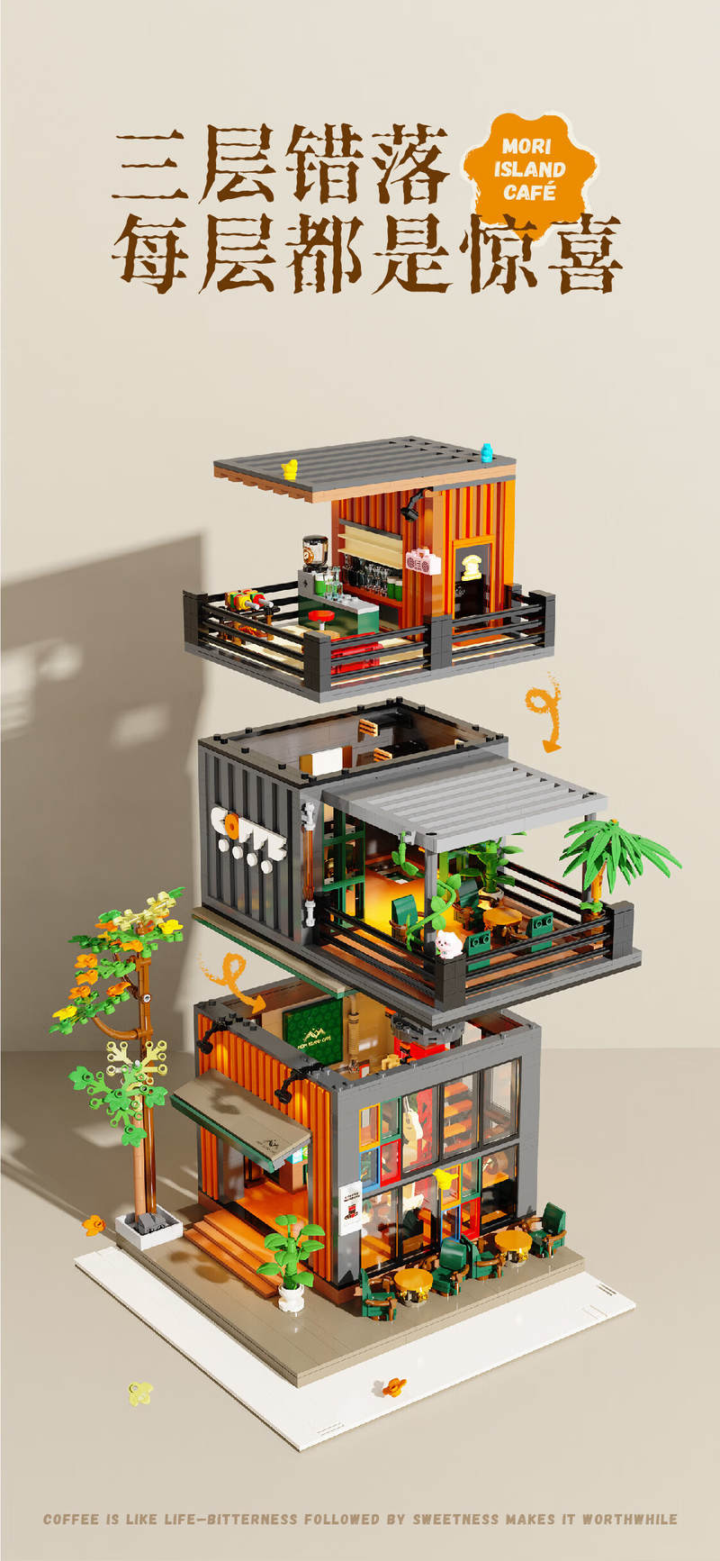 森屿咖啡馆(Mori Island Cafe)属于街景系列积木套组,整个套组包含 2366 个积木颗粒。首发于2026年。