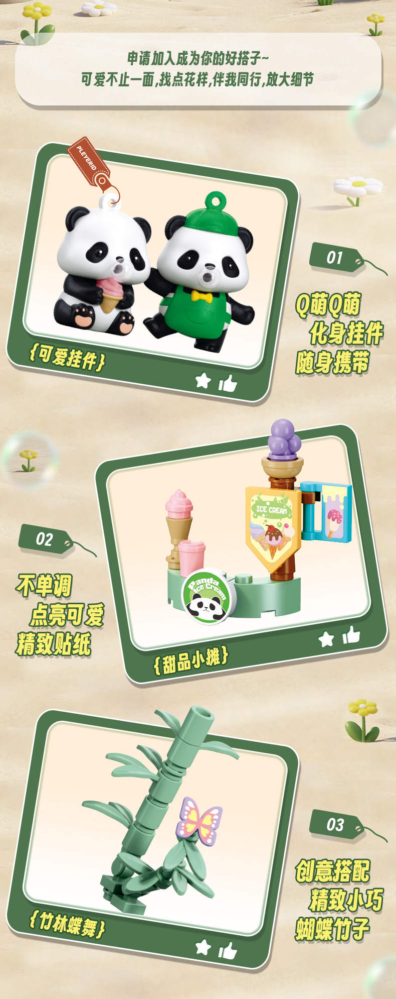 47PCS。呆萌熊猫