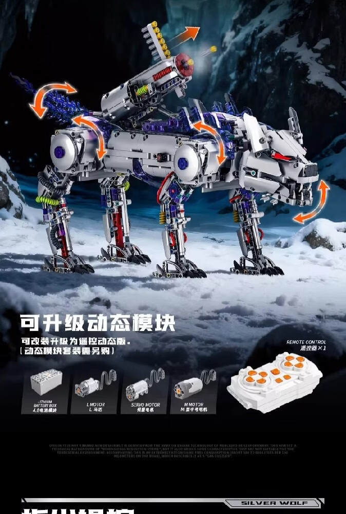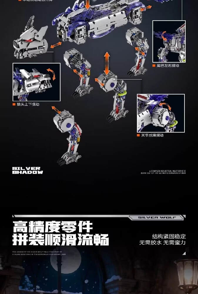 机械银狼(Silver Wolf)属于机械组系列积木套组,整个套组包含 1859 个积木颗粒。首发于2026年。